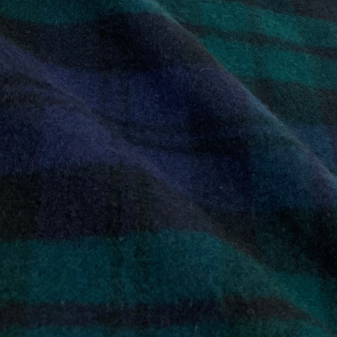 深みのあるネイビー×ダークグリーン系のチェック柄が映える、大判マフラーです。毛足のあるウール系素材感で、肌触りが良く保温性も高い一枚。フリンジ仕様と織りネームタグがさりげないアクセントになっています。首元の防寒はもちろん、肩掛けやひざ掛けとしても使え、秋冬のデイリーから通勤スタイルまで幅広く活躍します。