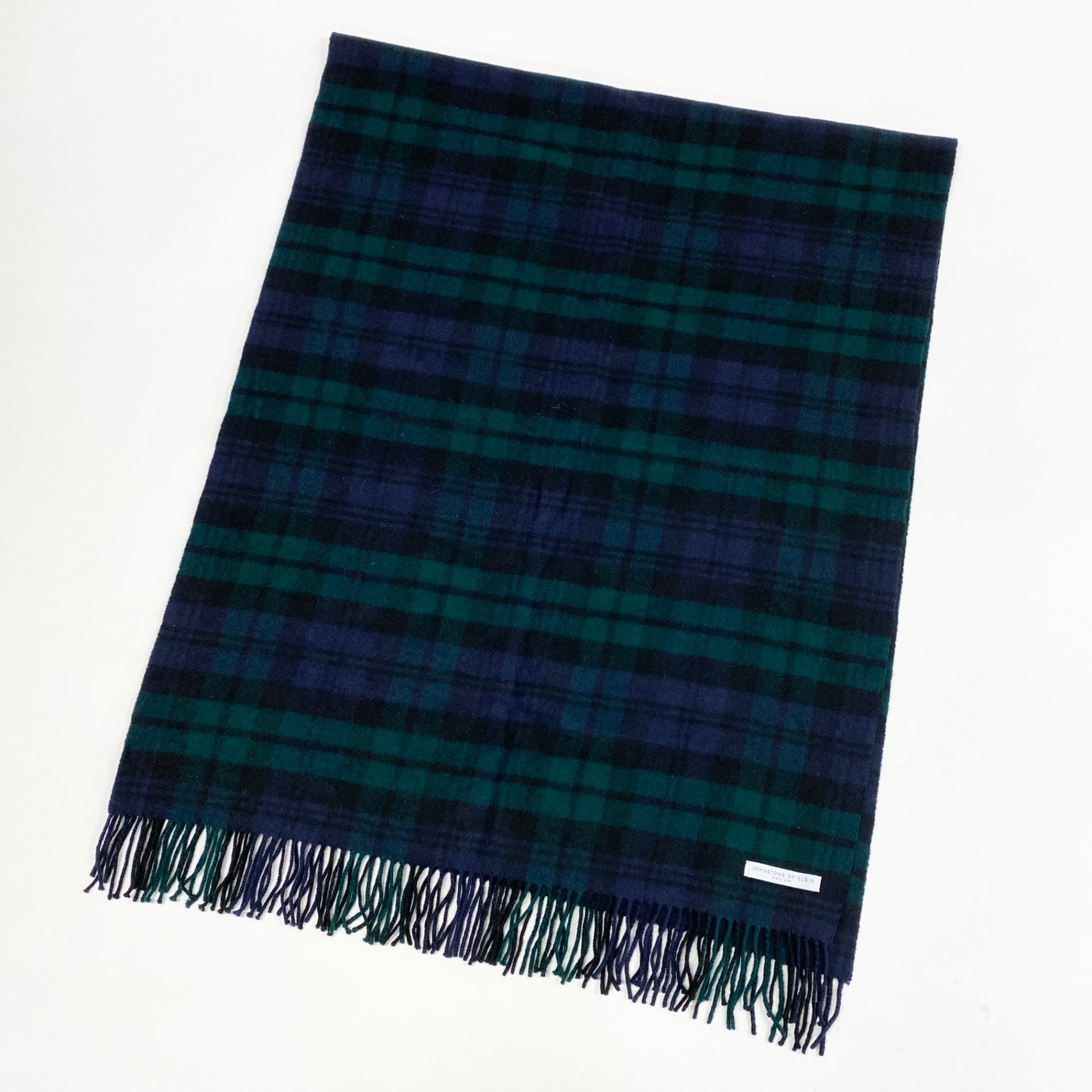 l20《美品》 JOHNSTONS OF ELGIN ジョンストンズオブエルガン ブラックウォッチ 大判マフラー フリンジストール 小物 グリーン系 カシミヤ ユニセックス 男女兼用k02i