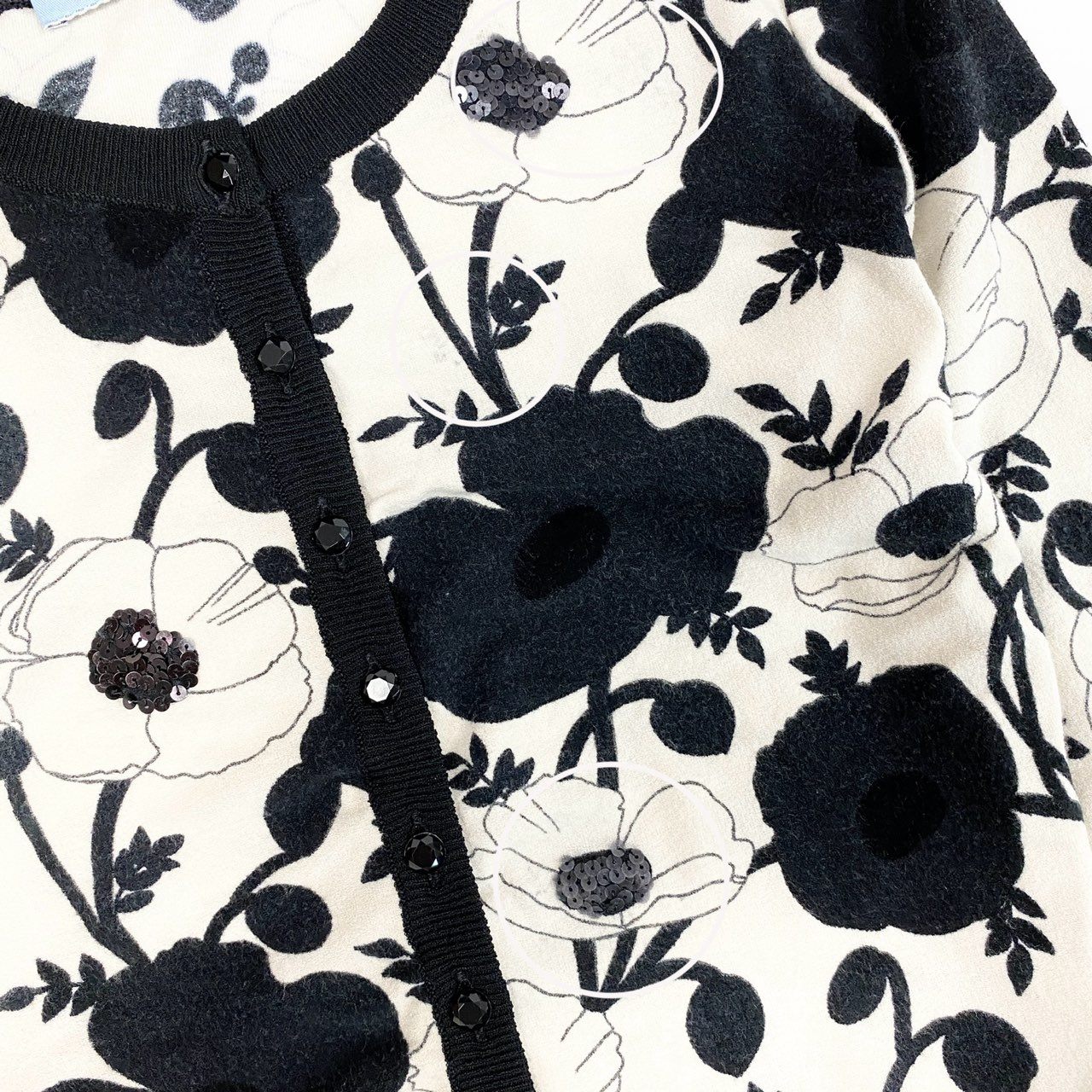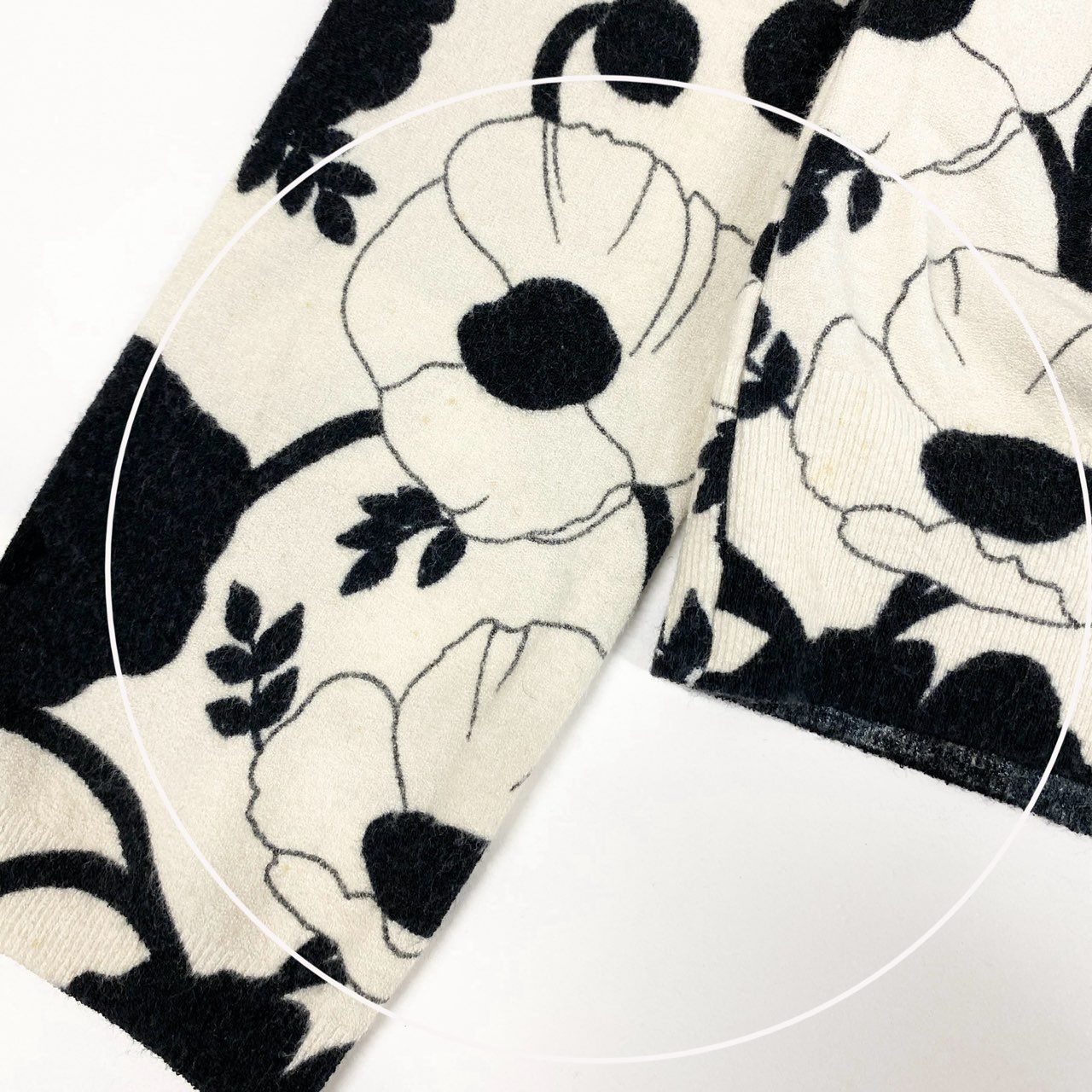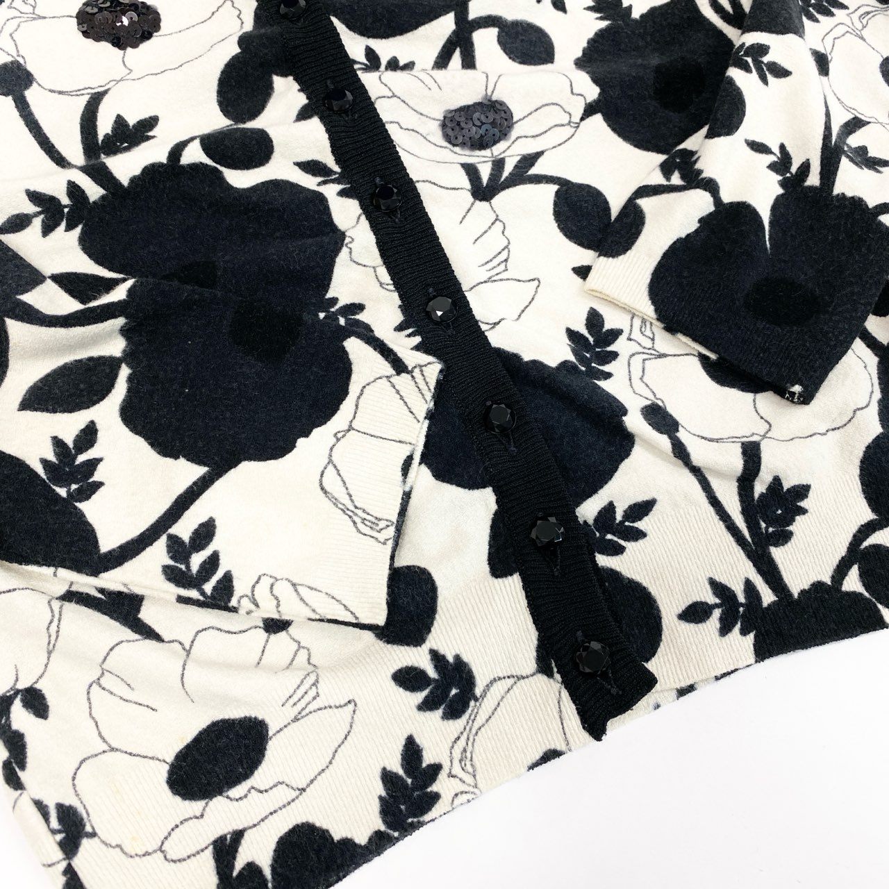 31k2 Blumarine ブルマリン イタリア製 長袖ニットカーディガン 花柄プリント ビジュー スパンコール 38 ホワイト ブラック レディースo07t