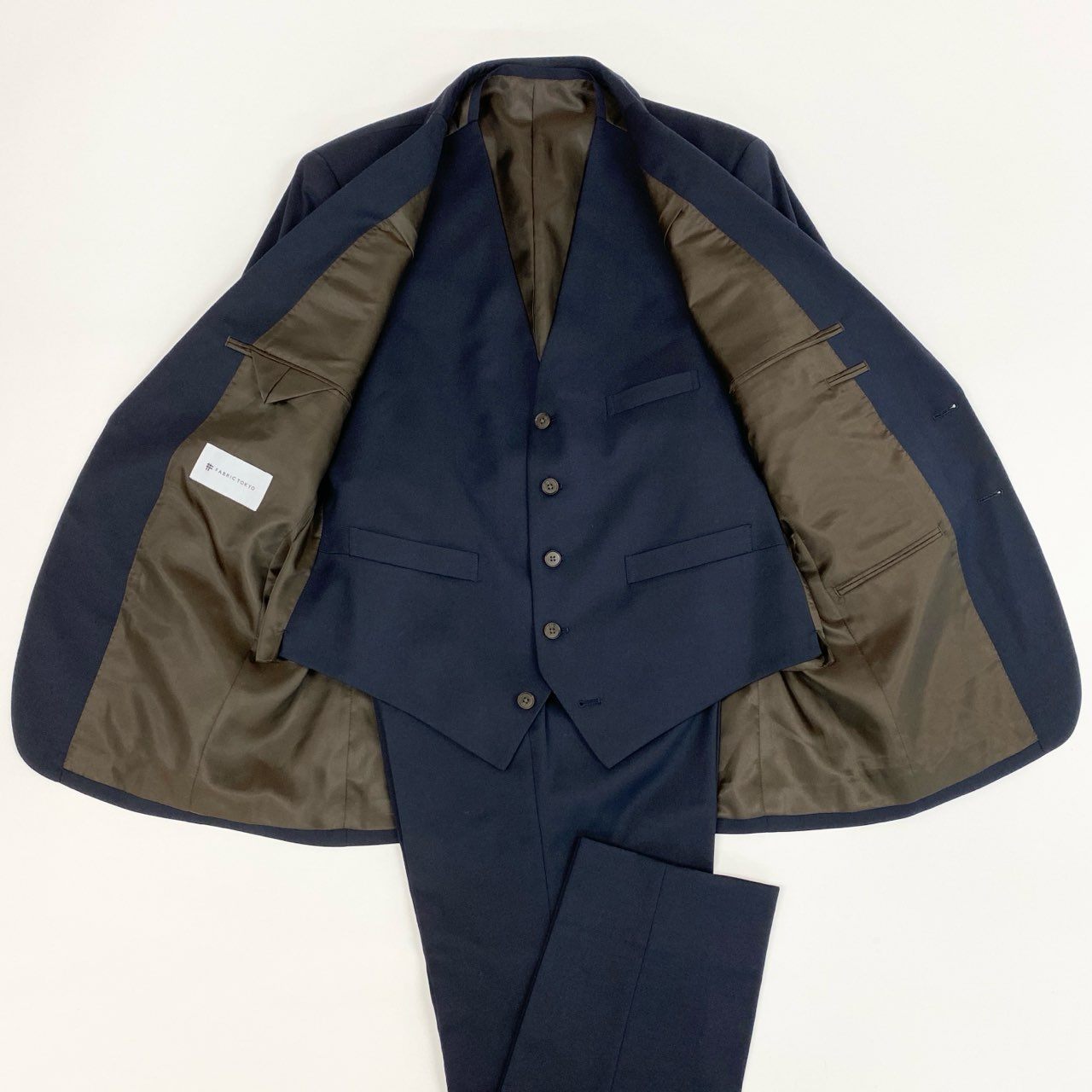 53j17 FABRIC TOKYO ファブリックトーキョー セットアップスーツ 3ピース シングルスーツ ビジネス フォーマル ネイビー メンズu02t