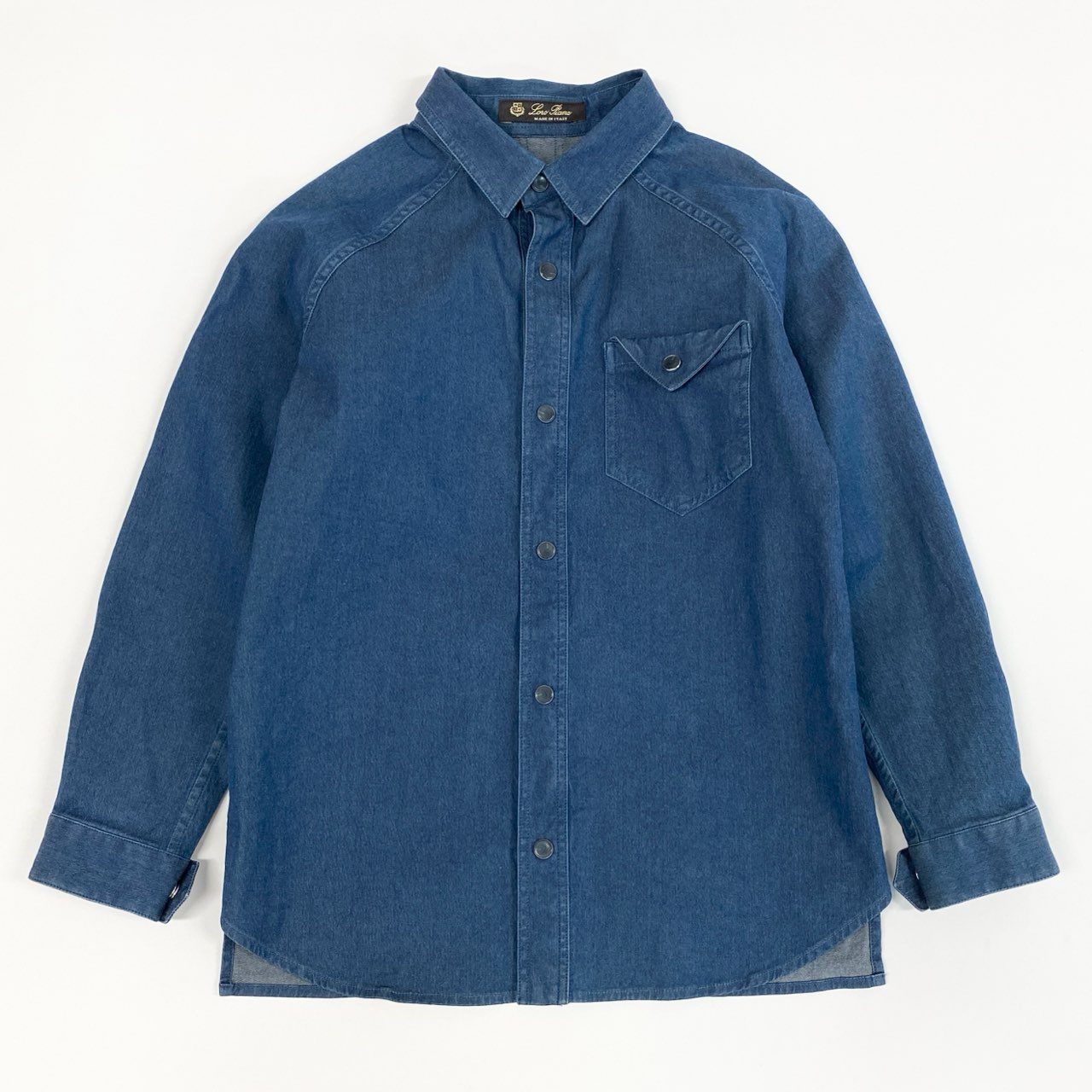 68j15 Loro Piana ロロピアーナ デニムシャツ 長袖シャツ トップス 胸ポケット 46サイズ インディゴ キッズ メンズu02t
