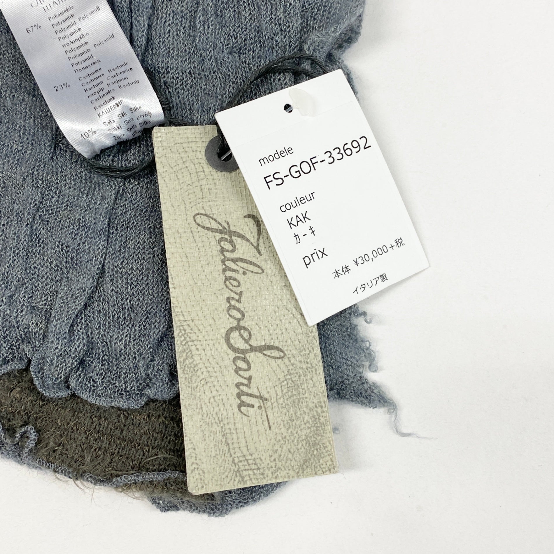 35L19《タグ付き》 Faliero Sarti ファリエロサルティ 大判マフラー ドッキングデザイン ストール 40×160 ブルー系 カシミヤ混 ユニセックス 男女兼用k02i