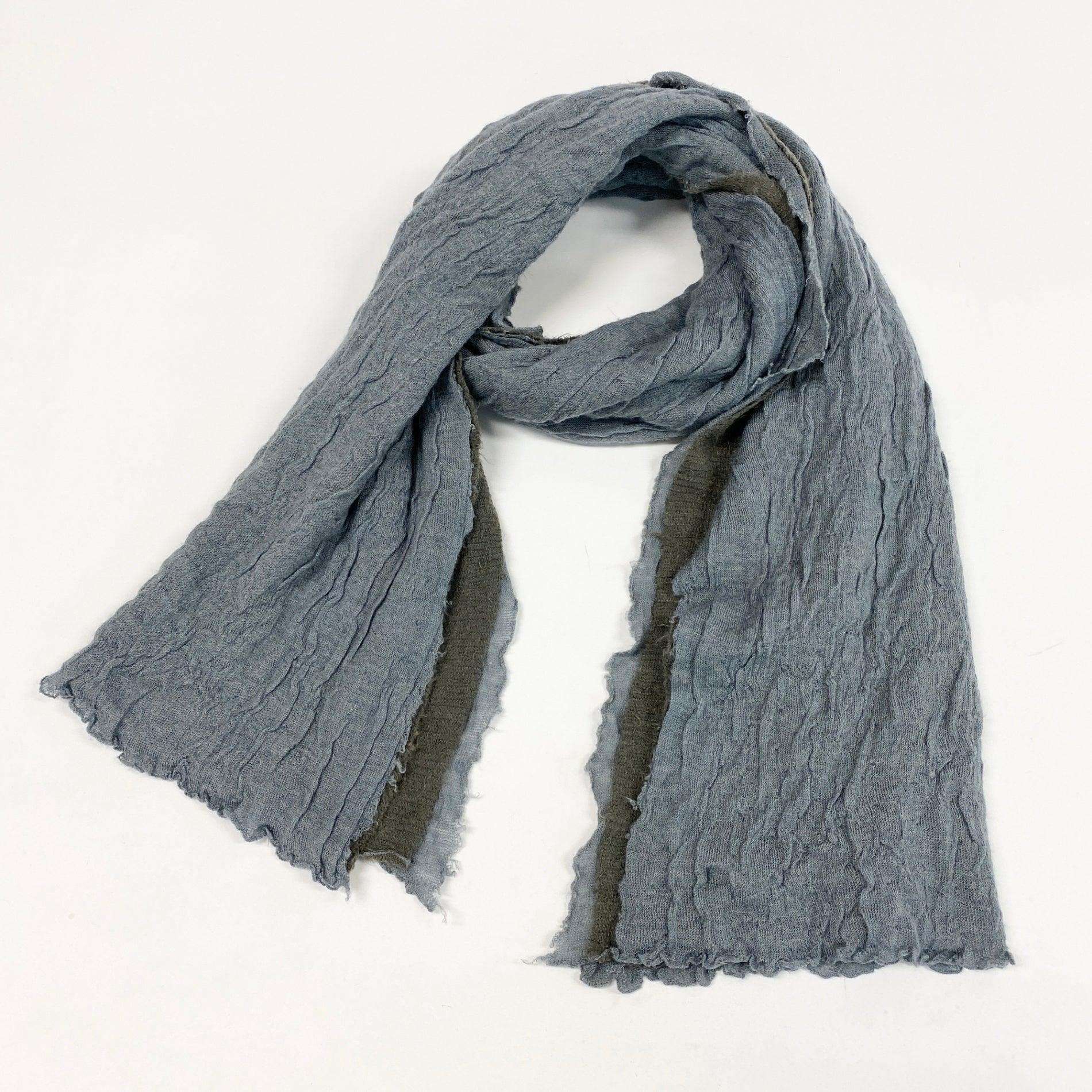 ファリエロサルティらしい上質感が際立つ、ブルー系のドッキングデザイン大判マフラーです。表情の異なる生地を組み合わせたデザインで、無地ながら奥行きのある印象。カシミヤ混の柔らかくマットな質感が心地よく、首元を優しく包み込みます。カジュアルからきれいめまで幅広く合わせやすく、コーディネートのアクセントとして活躍する一枚です。