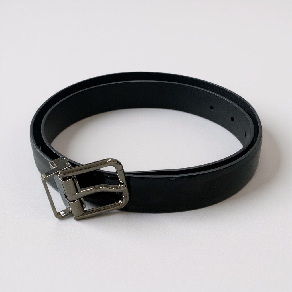 a6【美品】DOLCE&GABBANA ドルチェアンドガッパーナ ベルト ラウンドバックル エナメル イタリア製 BC3614 85cm 34inch ブラック レザー メンズk02i