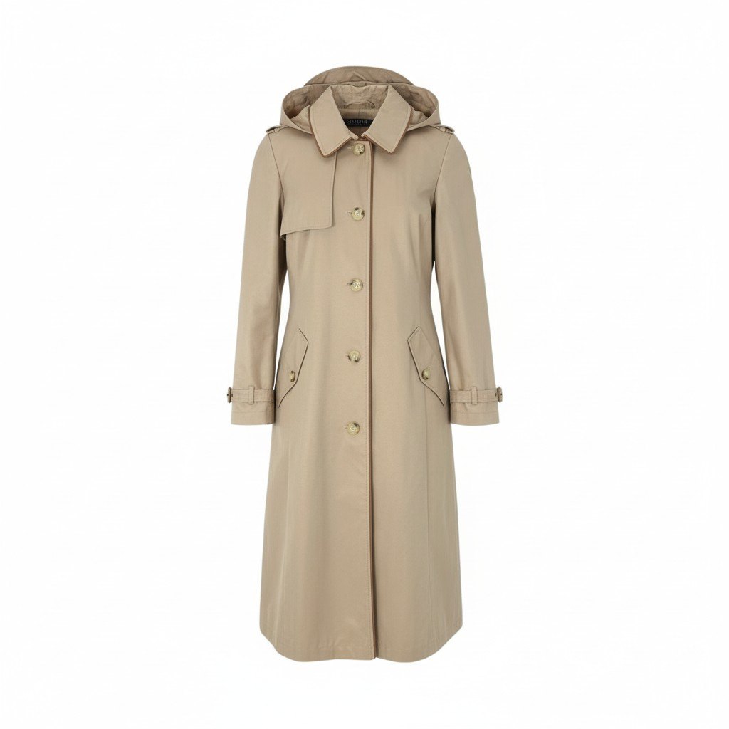 ローレンラルフローレンのトレンチコートで、落ち着いた ベージュカラー にマットな質感の生地が上品に映える一着です。 レザーパイピングがアクセントになっており、シンプルながらクラシックな存在感のあるデザインです。 取り外し可能なフード付きで、天候やスタイルに応じて2WAYで使える実用性の高い仕様。 裏地には総柄が施され、さりげなく高級感を楽しめます。 通勤から日常のお出かけまで幅広く活躍し、長く愛用できる定番トレンチをお求めの方におすすめです。