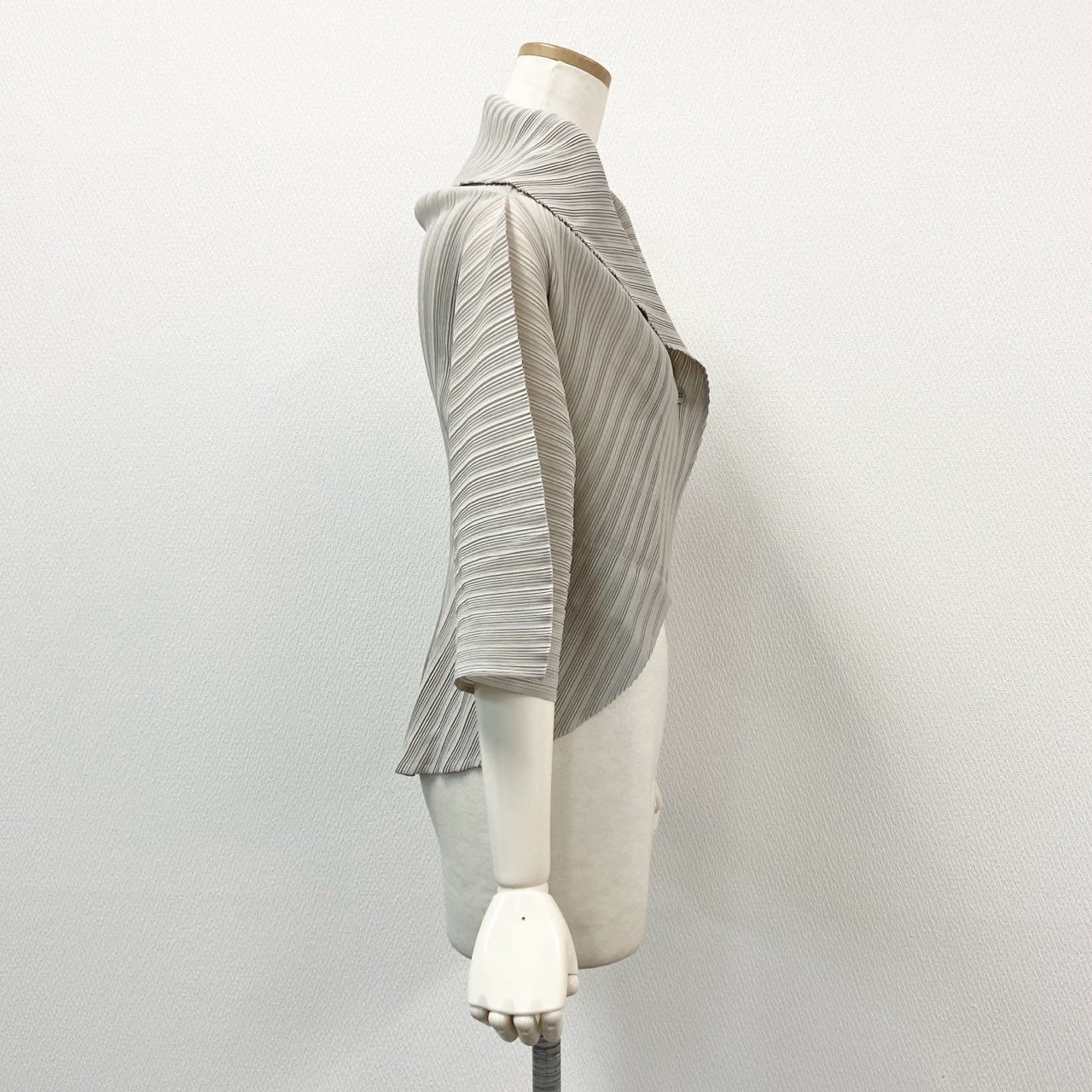 46e9 PLEATS PLEASE プリーツプリーズ イッセイミヤケ ショールカラー 変形カーディガン 羽織り サイズ03 ライトグレー レディース 女性用 トップス