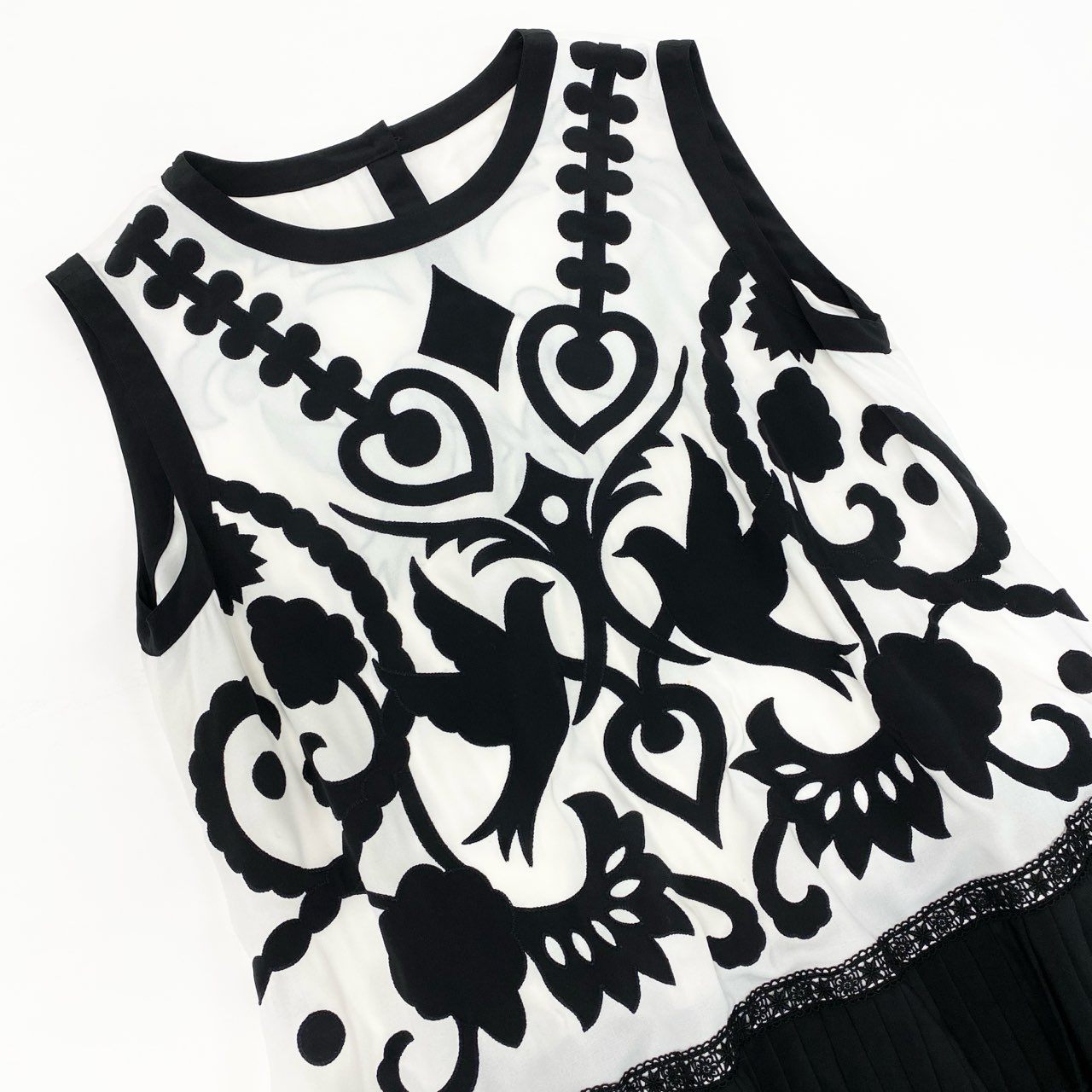 18k20 TOKUKO 1er VOL トクコプルミエヴォル ノースリーブワンピース ドッキングワンピース モノトーン プリーツ切替 レディース 女性用 9 ブラック ホワイトu02t