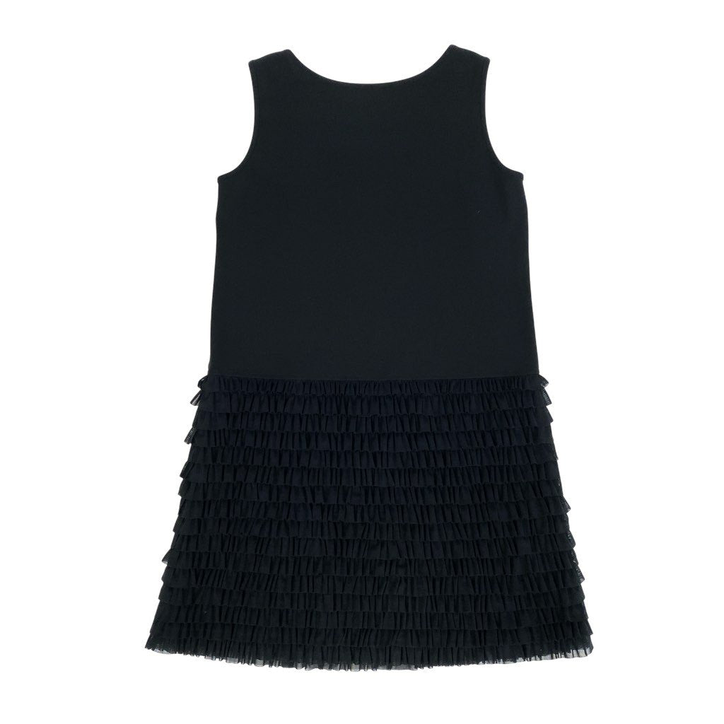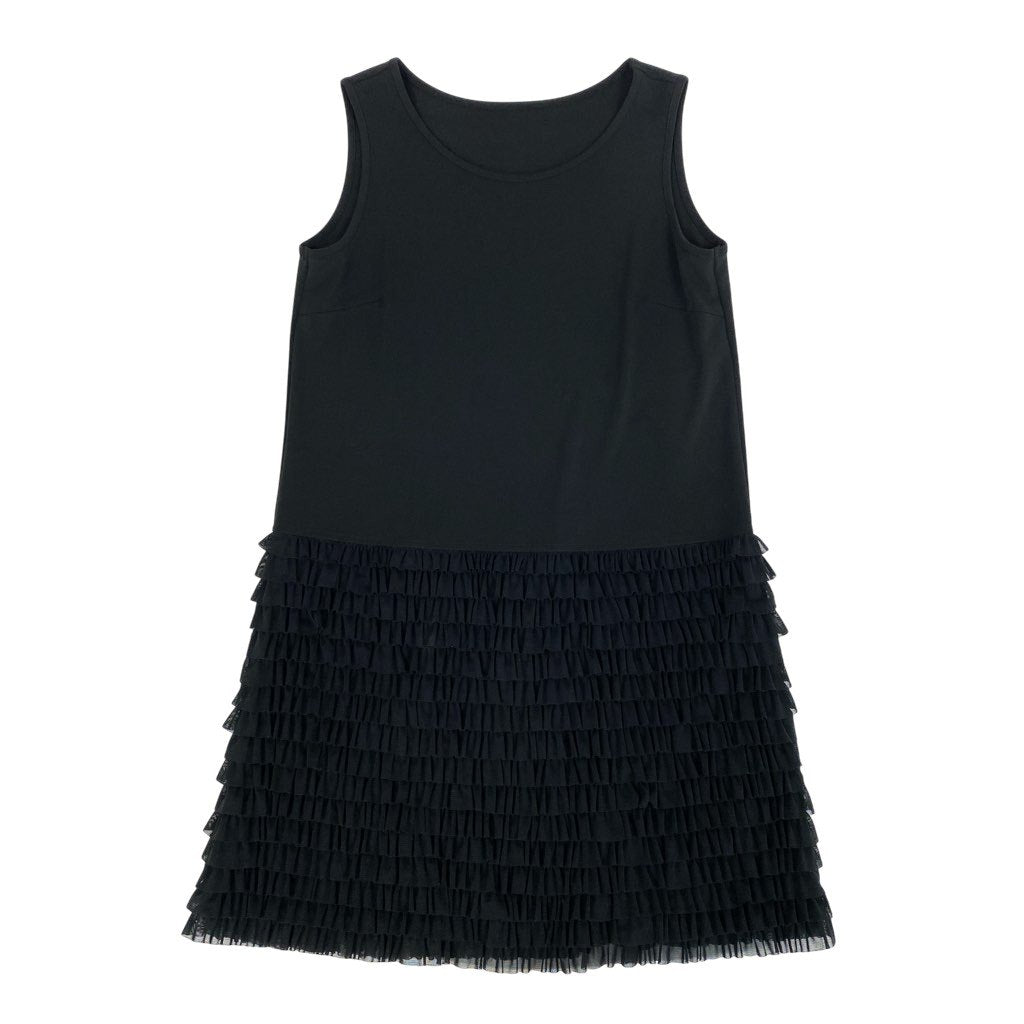 83L22 【美品】TOKUKO 1er VOL トクコプルミエヴォル ノースリーブワンピース 膝丈ワンピース チュールフリル ストレッチ素材 9サイズ ブラック レディースu02t