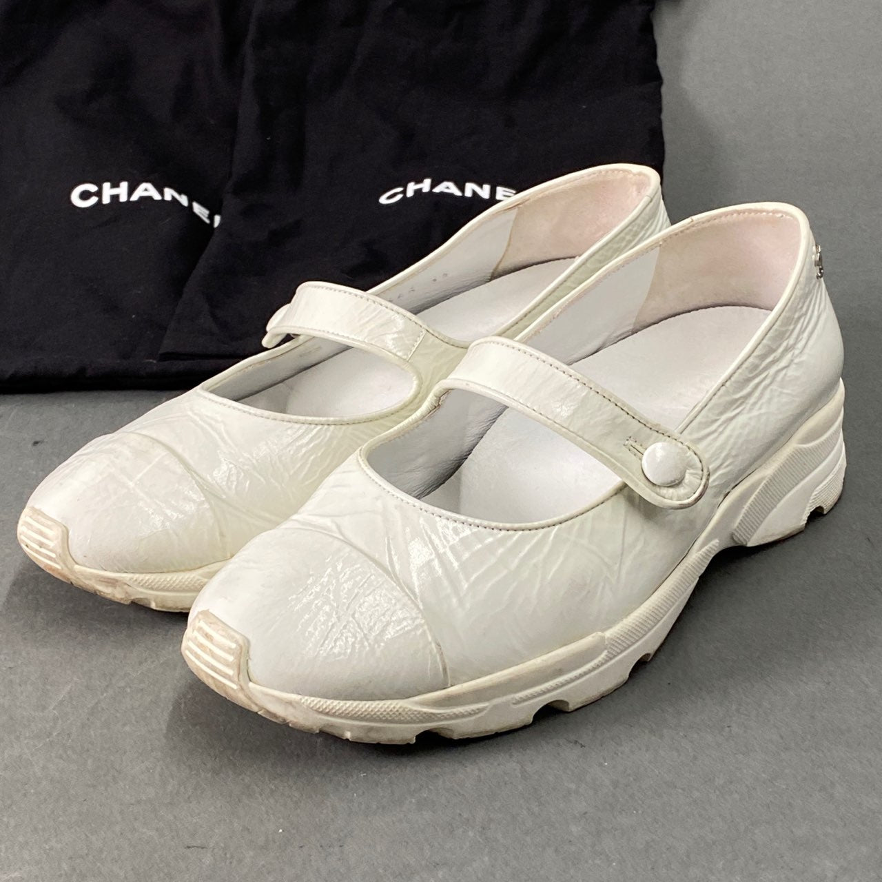 2L26 CHANEL シャネル メリージェーン ココマーク パテントレザー ストラップシューズ 35 ホワイト スニーカー イタリア製
