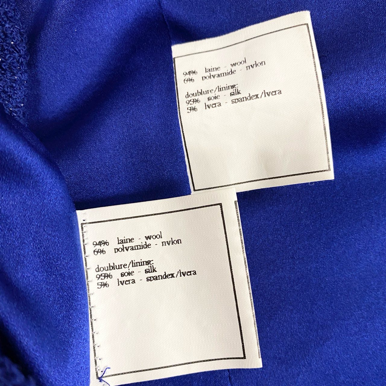 シャネルのラグジュアリーな雰囲気を纏ったセットアップスカートです。カラーは深みのあるロイヤルブルーで、上質なウールツイード素材がマットな質感と立体的な風合いを演出。フロントや袖口にあしらわれたメタルボタンがクラシカルなアクセントとなっています。ジャケットはヒップをカバーし、スカートはひざ丈で端正な印象を与え、ビジネスや式典、特別なお出かけに最適。永くご愛用いただける、洗練された一着です。