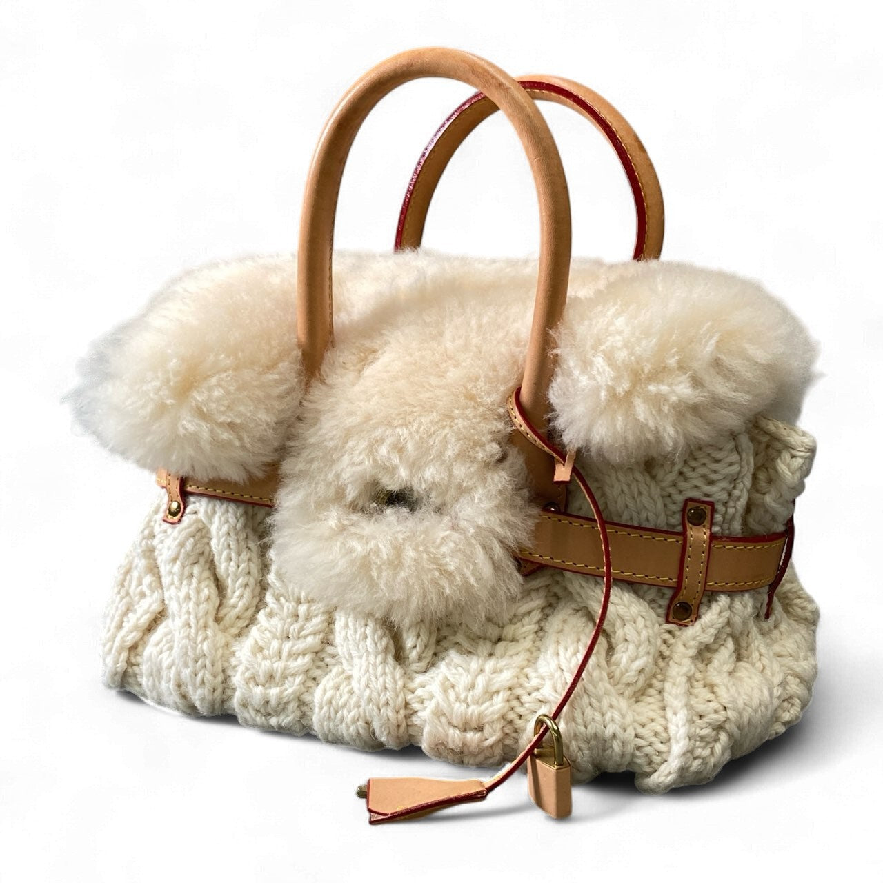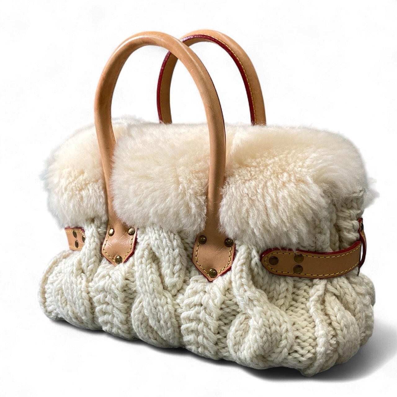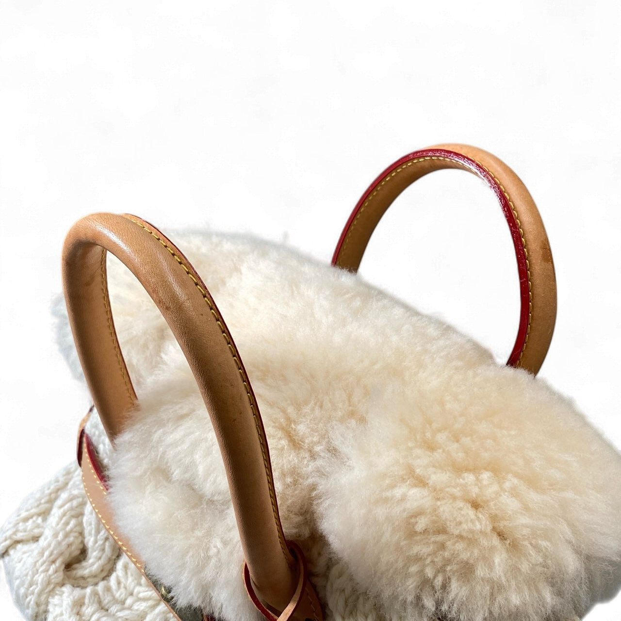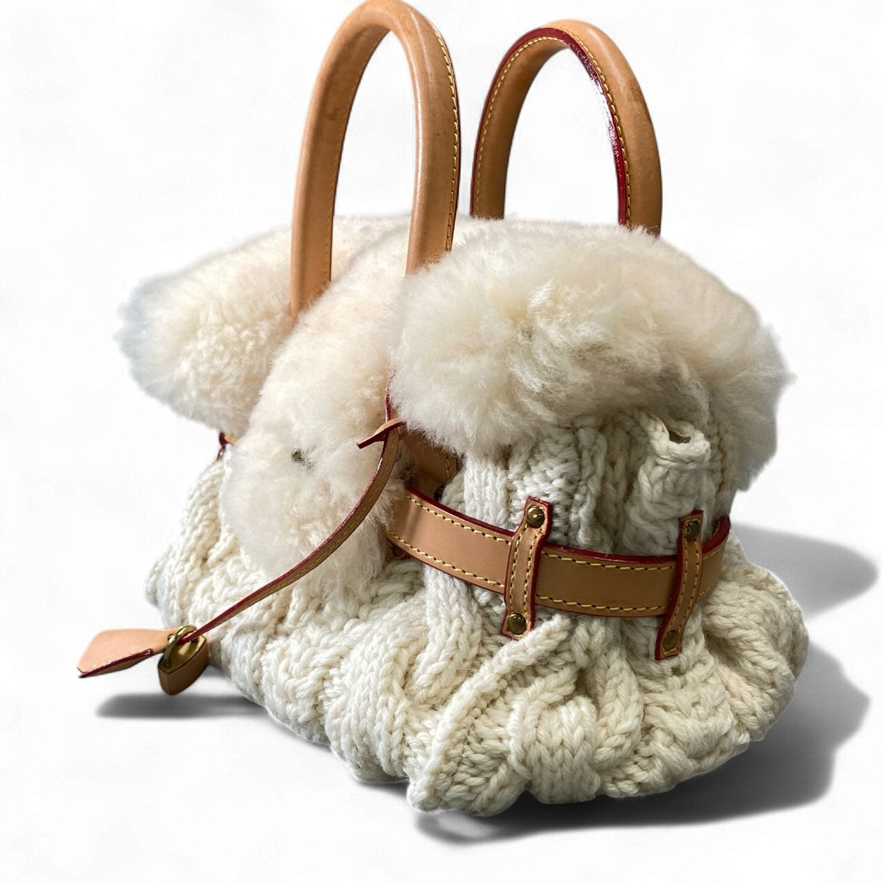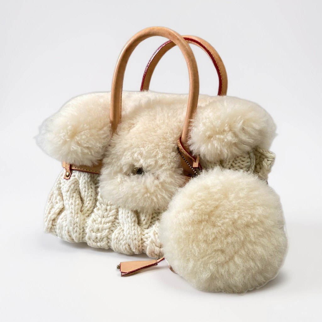 MONTEROSAのファートートバッグ。優しいアイボリー系のクリームホワイトカラーで、温かみのあるふわふわのフェイクファーと、ボディ全体に施されたケーブル編みニットが冬らしい可愛さを引き立てます。丸いポンポンチャームやナチュラルウッド調のハンドルなど、ナチュラルで愛らしいデザインが魅力。コンパクトながら奥行き16cmで収納力があり、デイリーのお出かけや冬のコーデのアクセントにもぴったり。季節感たっぷりのアイテムとしてギフトにもおすすめです。