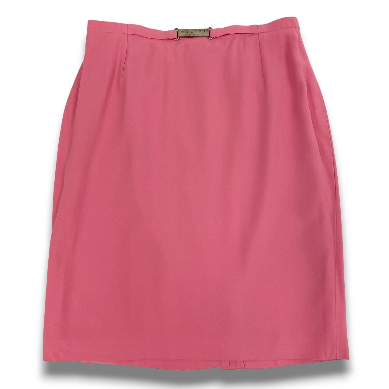 8b20 Vintage CELINE セリーヌ ロゴ金具 タイトスカート 膝丈 46 ライトピンク フランス製 大きいサイズu02t
