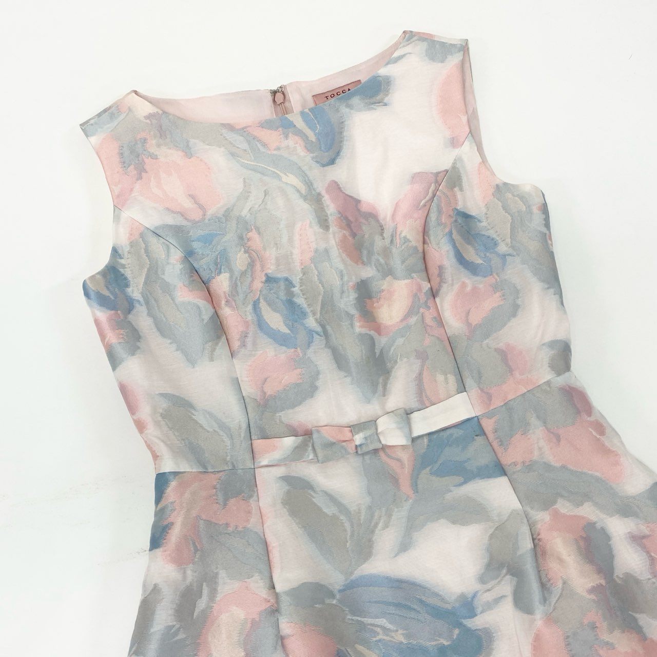 47k5 TOCCA トッカ MOONLIGHT ムーンライトドレス 22aw ジャガード ノースリーブワンピース 花柄 洗える○ レディース 女性用 OPTOSS0310 2 サックスブルー系o07t
