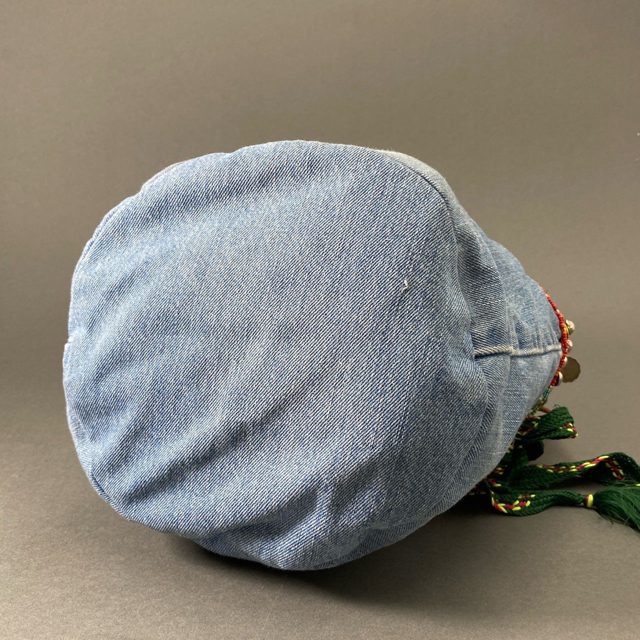 Af23 77circa ナナナナサーカ circa make afghan belt denim bag デニム 巾着ハンドバッグ 刺繍 コイン インディゴブルー