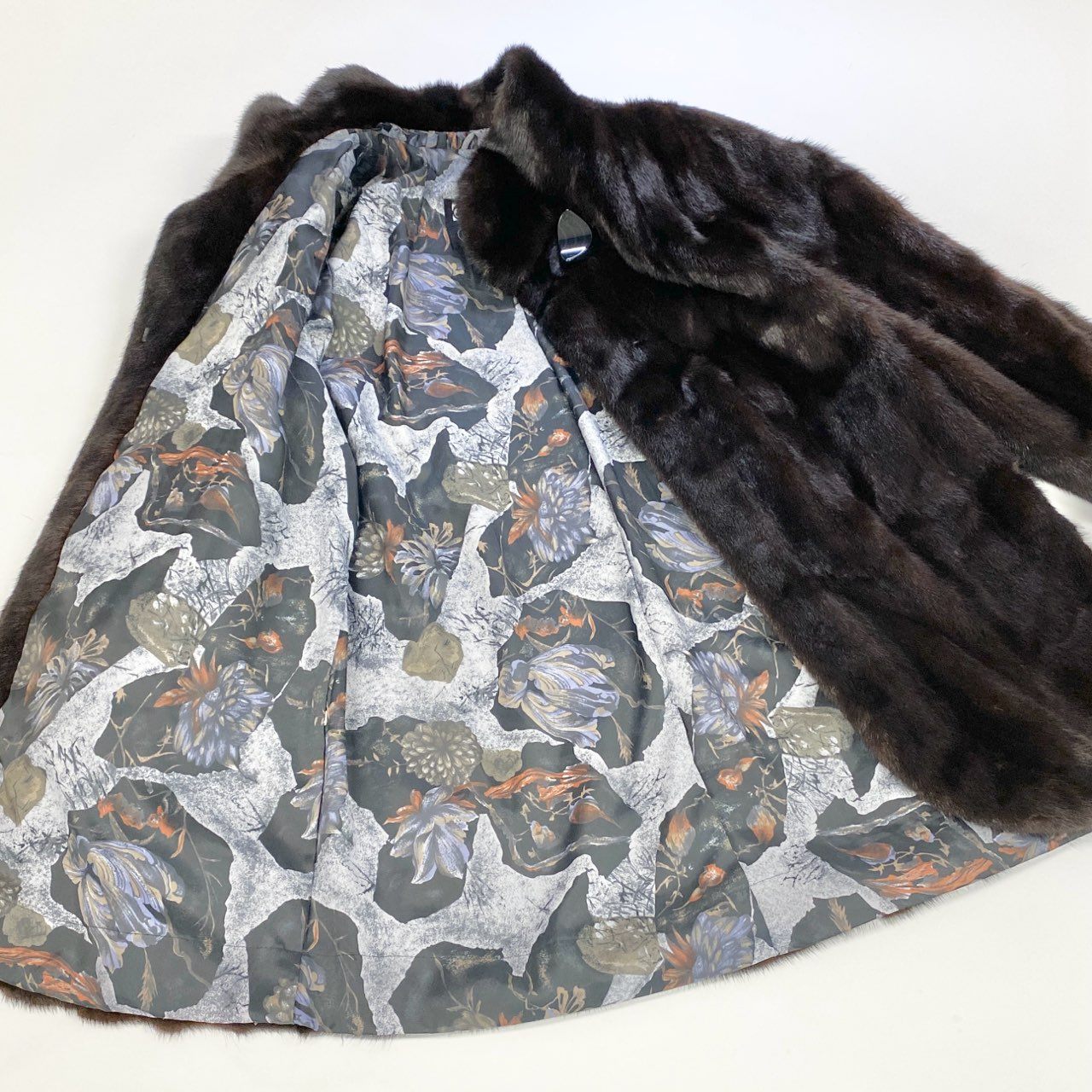 43k14【美品】EMBA エンバ 毛皮コート ファーコート ミンクファー ミンクコート ロングコート 装飾ボタン 裏地総柄 ダークブラウン レディースu02t