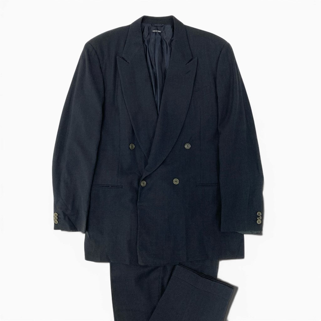 42a27 GIORGIO ARMANI ジョルジオアルマーニ イタリア製 セットアップ ダブルスーツ フォーマル ウールブレンド〇 大きいサイズ 52 ブラックo07t