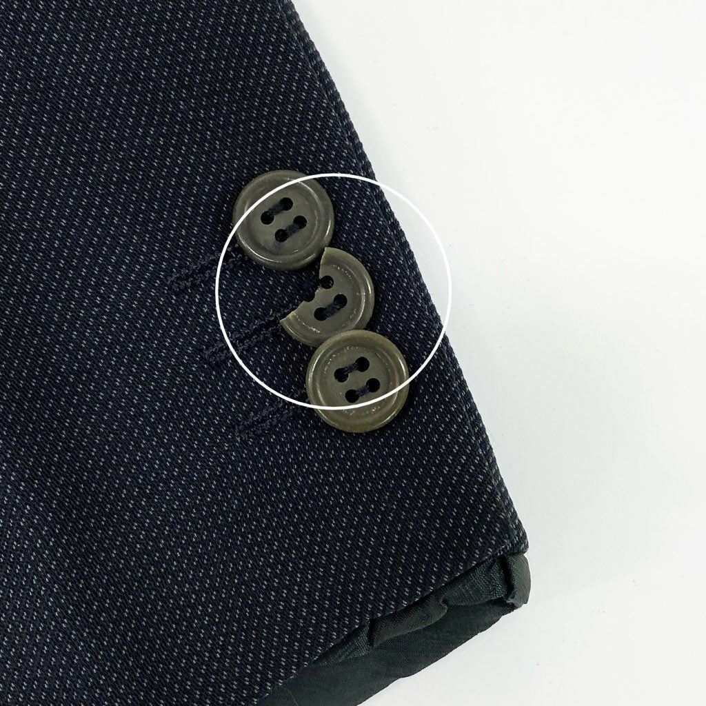 身長175〜185cm前後、胸囲100〜110cm程度の体型に適し、ビジネスからフォーマルシーンに向いた一着です。