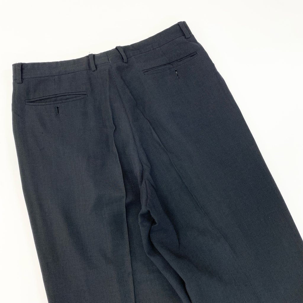 落ち着いたブラック系カラーの無地デザインが印象的な、GIORGIO ARMANIのスーツセットアップです。素材はマットな質感のウール系生地で、上品さと実用性を兼ね備えています。ダブルブレスト仕様のジャケットに、控えめなメタルボタンを配したクラシカルな表情が特徴です。式典やビジネスシーンはもちろん、単品使いでジャケット・スラックスそれぞれを着回せる汎用性の高さも魅力です。