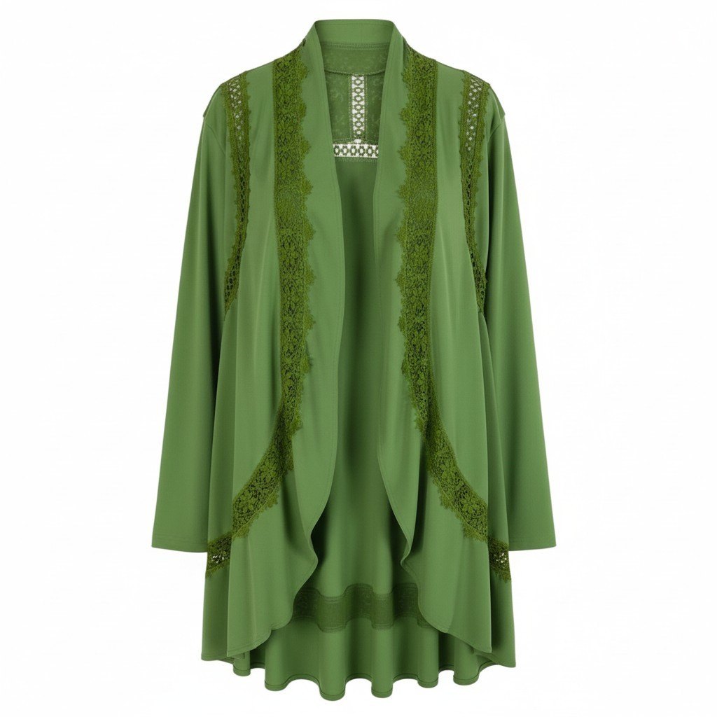 カーキグリーン寄りの深みのあるグリーンカラーが印象的なトクコプルミエヴォルのロングカーディガンです。無地ベースにフロントから裾にかけて施されたレース装飾が華やかさを添えるデザイン。落ち感のあるなめらかな素材で、ドレープが美しく上品なシルエットを演出します。ワンピースやパンツスタイルに合わせて、エレガントな日常使いからお出かけシーンまで幅広く活躍する一着です。