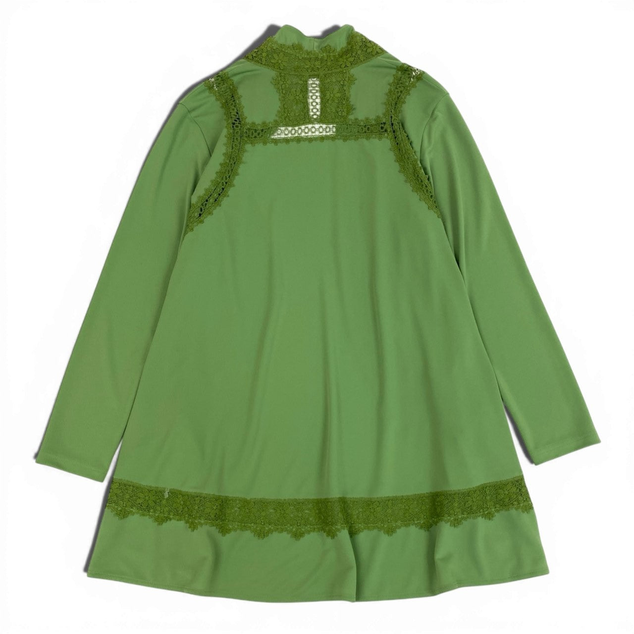 52b27 TOKUKO 1er VOL トクコプルミエヴォル ロングカーディガン 長袖 レース装飾 レディース 女性服 サイズ9 グリーンu02t