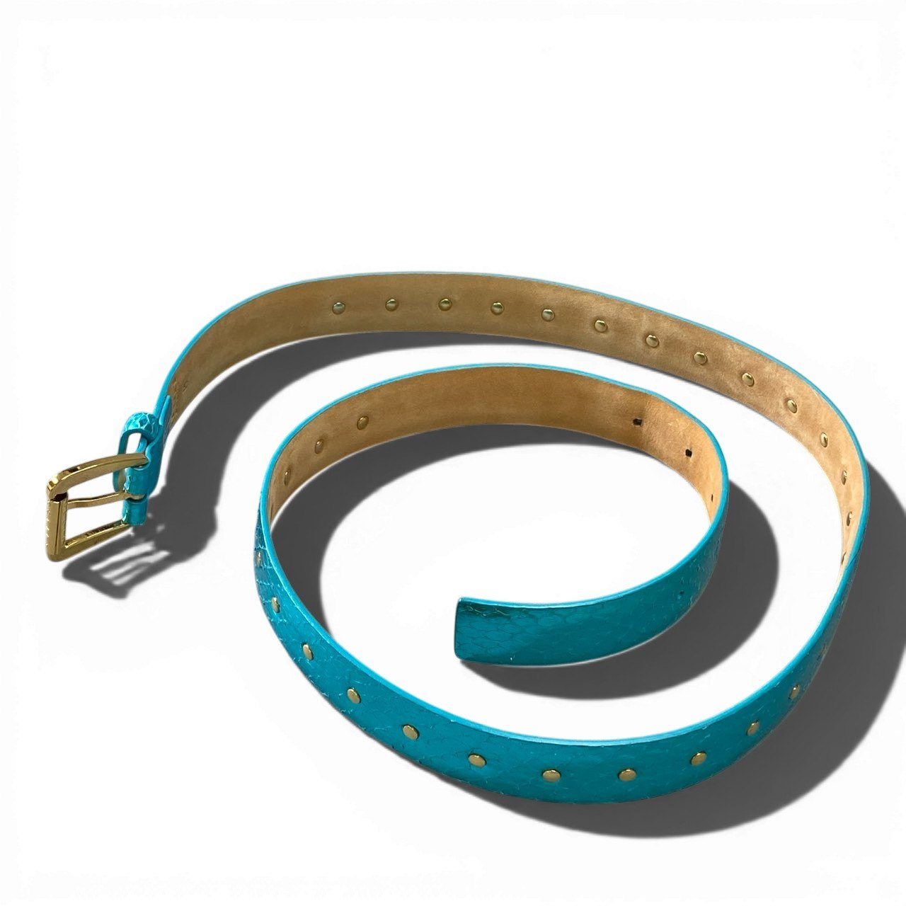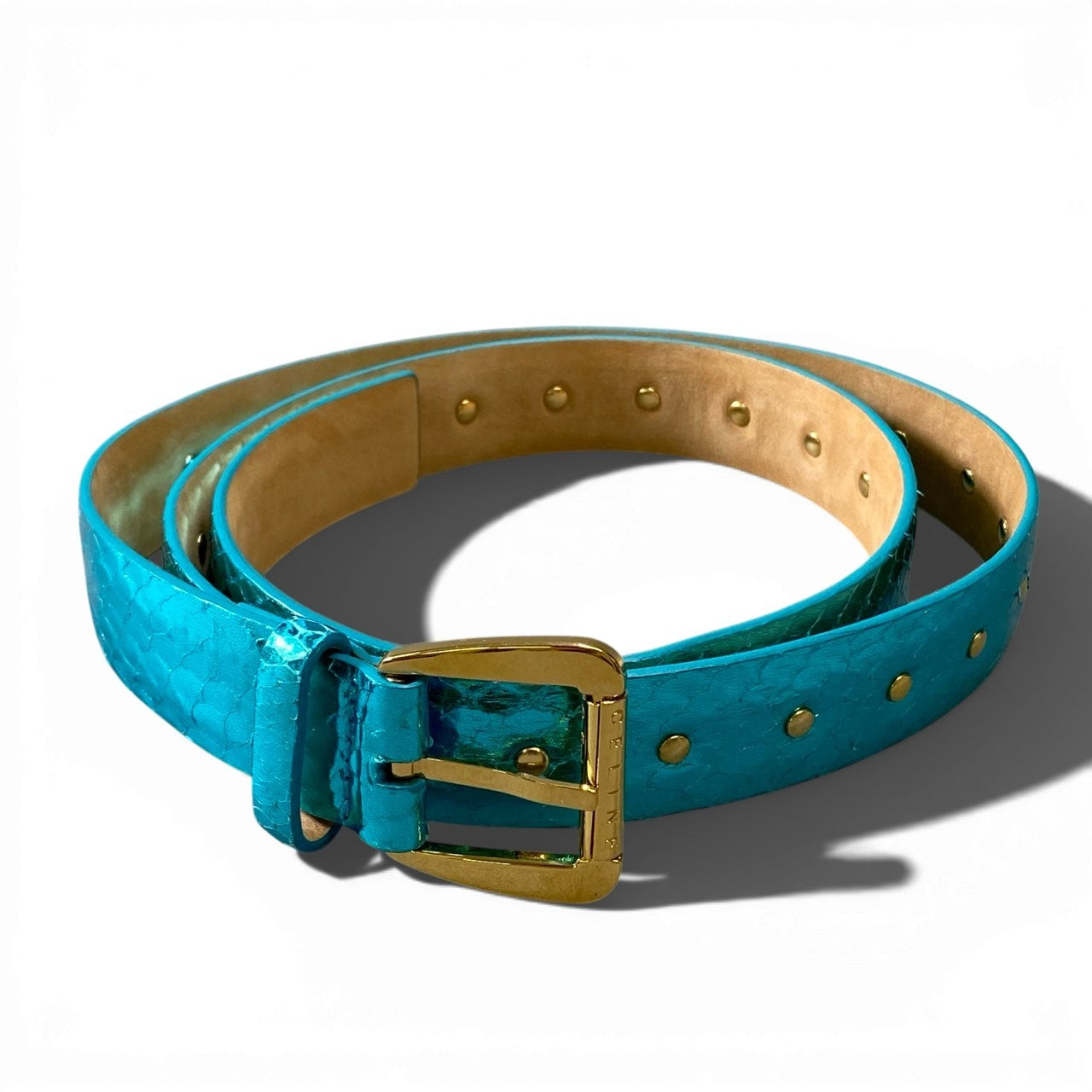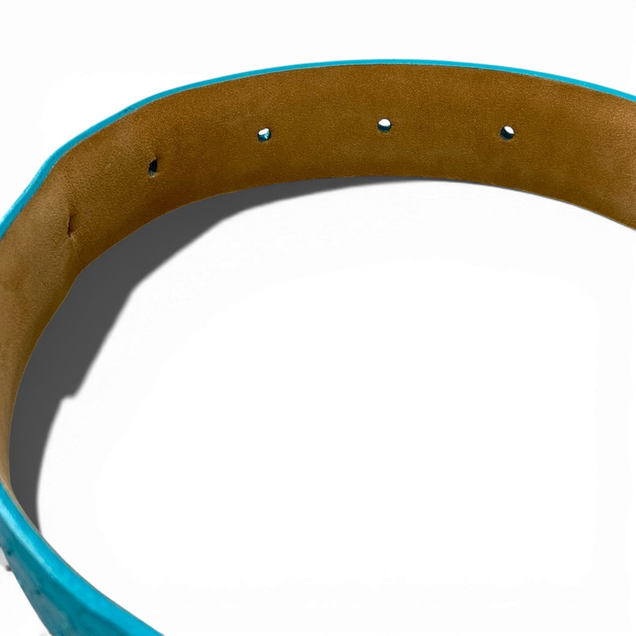 a6 CELINE セリーヌ ベルト 型押し メタリック イタリア製 ターコイズブルー レザー 本革 レディースk02i