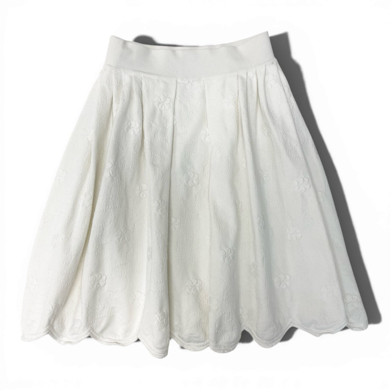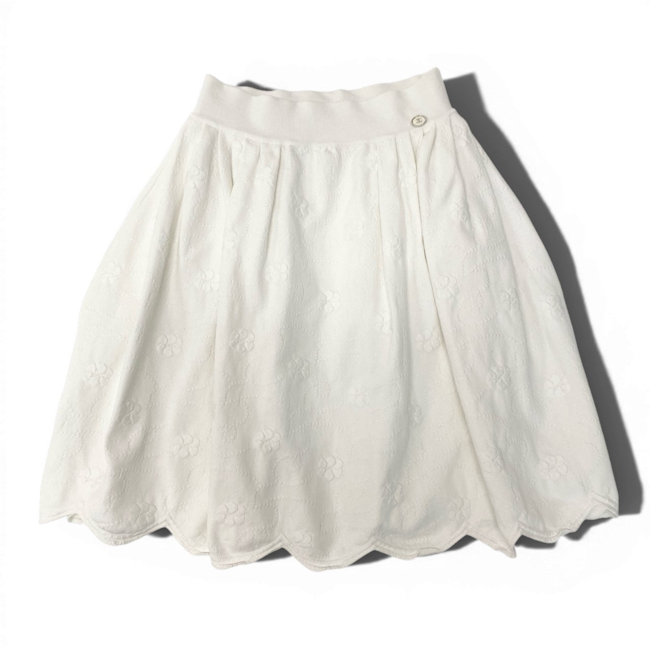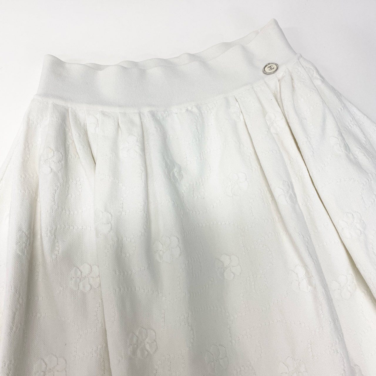 42b27 CHANEL シャネル P45288 ココマーク付き ジャガード カメリア ニットスカート サイズ36 ホワイト レディースk02i
