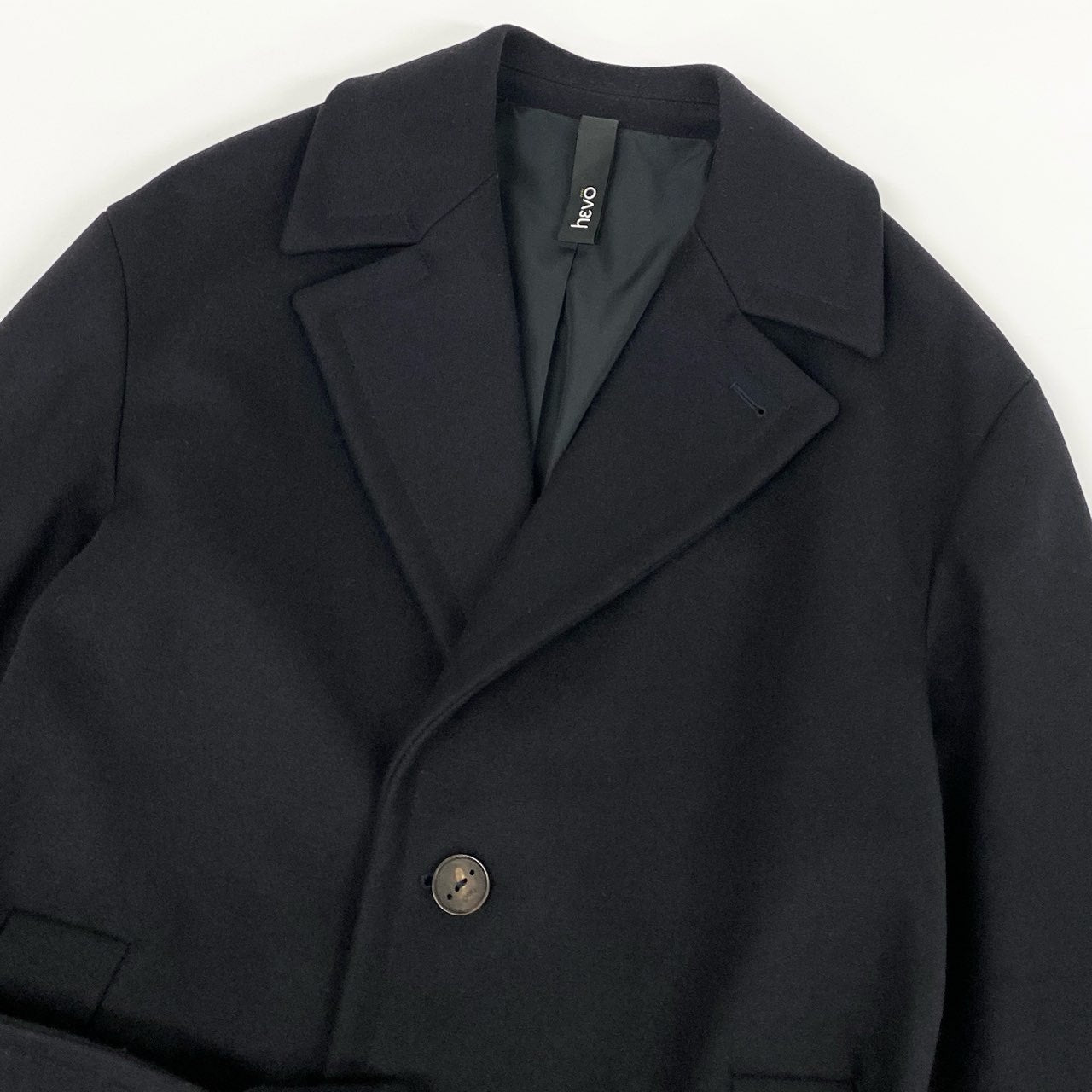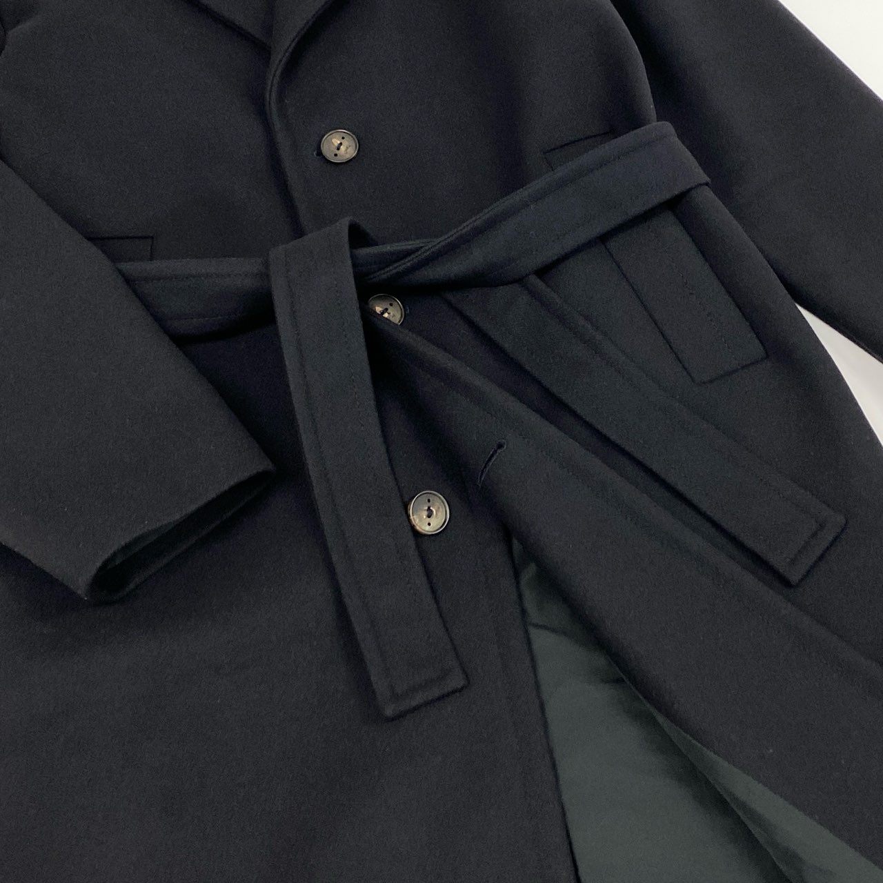 70i2 hevo イーヴォ チェスターコート ロングコート ベルテッドコート サイズ46 ダークネイビー メンズu02t