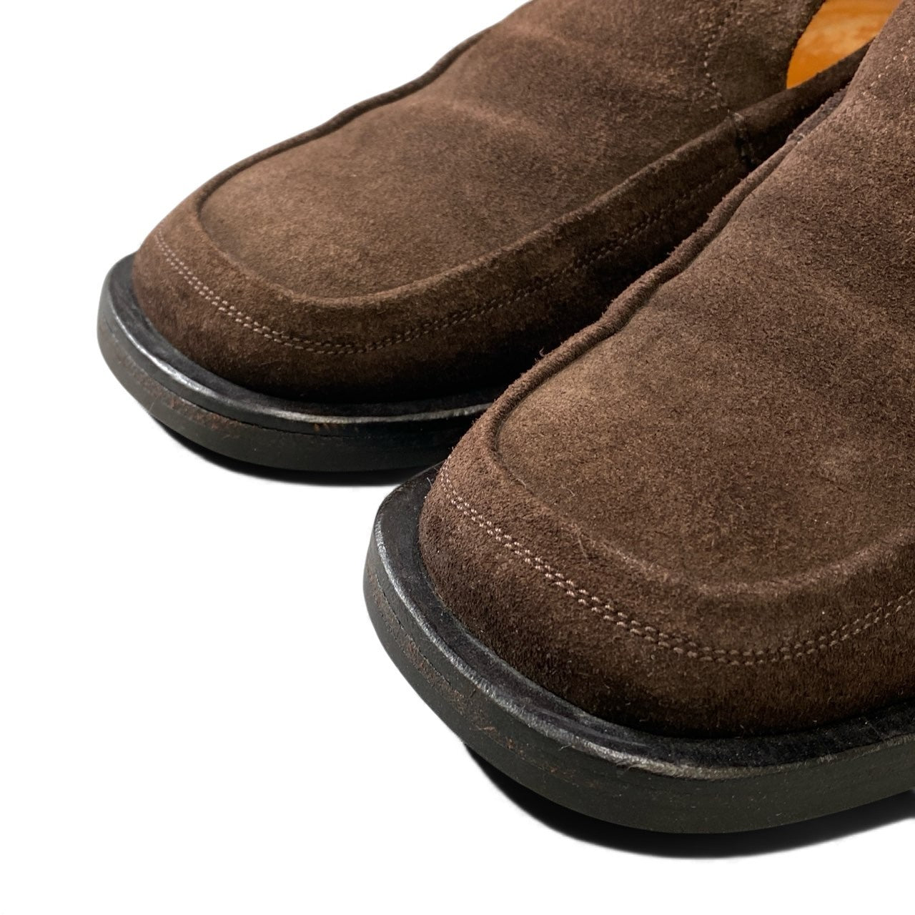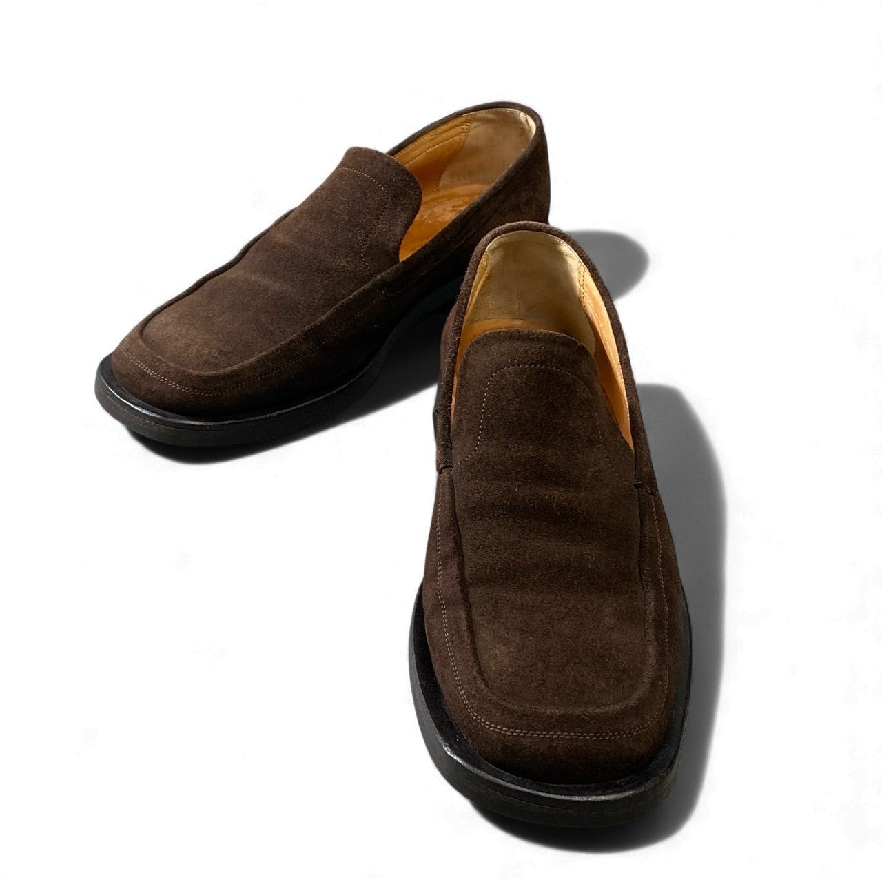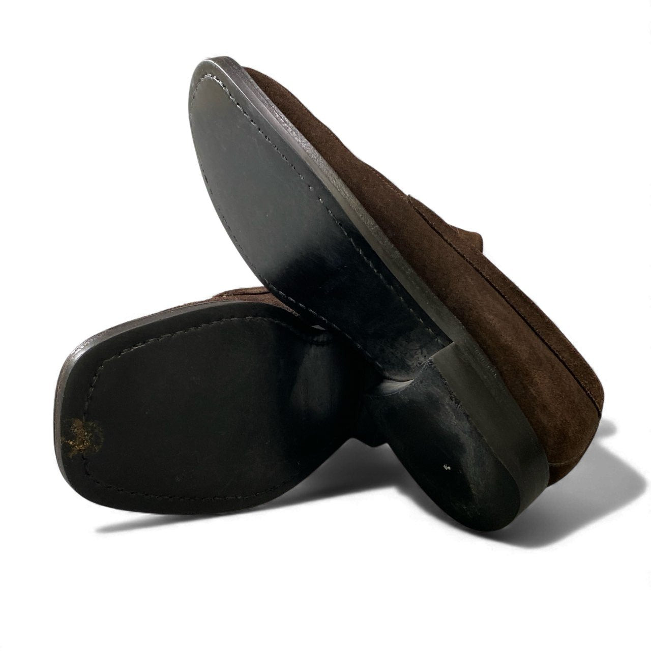 エルメスらしい端正な佇まいが魅力の、ブラウンスエードレザーローファーです。深みのあるブラウンカラーと、マットで上質なスエード素材が落ち着いた高級感を演出します。装飾を抑えたミニマルなデザインで、ビジネスカジュアルから休日のきれいめスタイルまで幅広く対応。レザーソール特有の品のある履き心地で、大人の足元にふさわしい一足です。