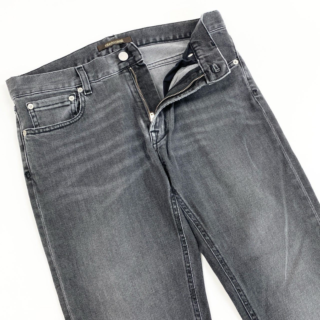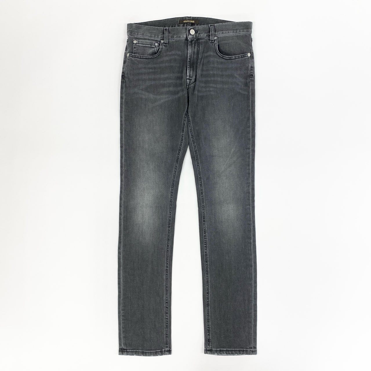 30i30 《美品》roberto cavalli ロベルトカヴァリ デニムパンツ スキニーパンツ ボトム ロゴ刺繍 FSJ203 DN013 32サイズ ダークグレー メンズo07t