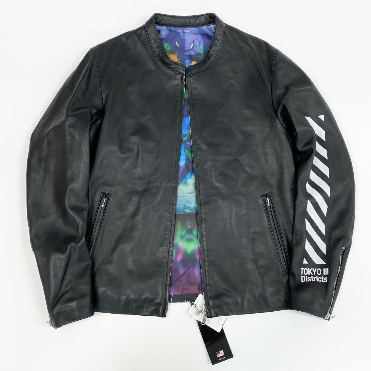 69i24 《未使用品》 TAKEO KIKUCHI タケオキクチ × EVANGELION エヴァンゲリオン ラムレザー シングルライダース ジャケット L ブラック シープスキン NERV 初号機 タグ付きt18r