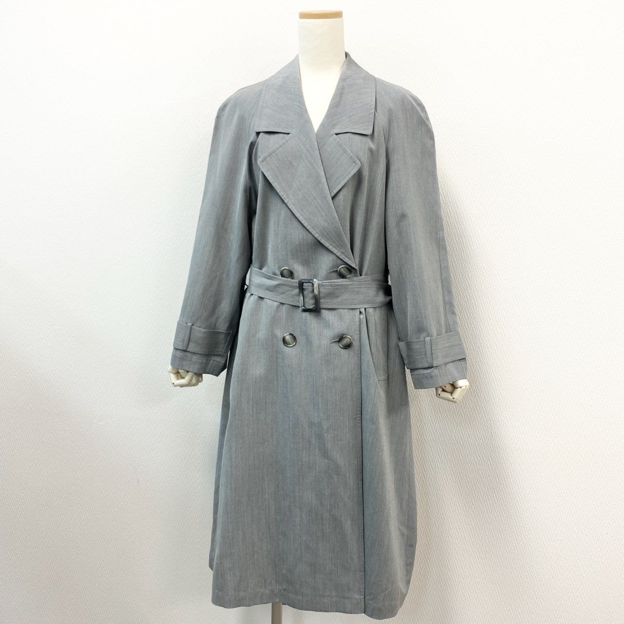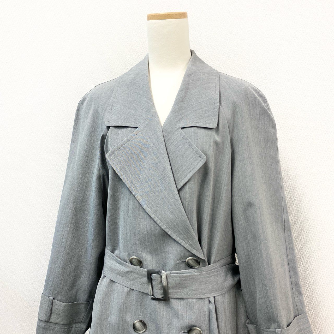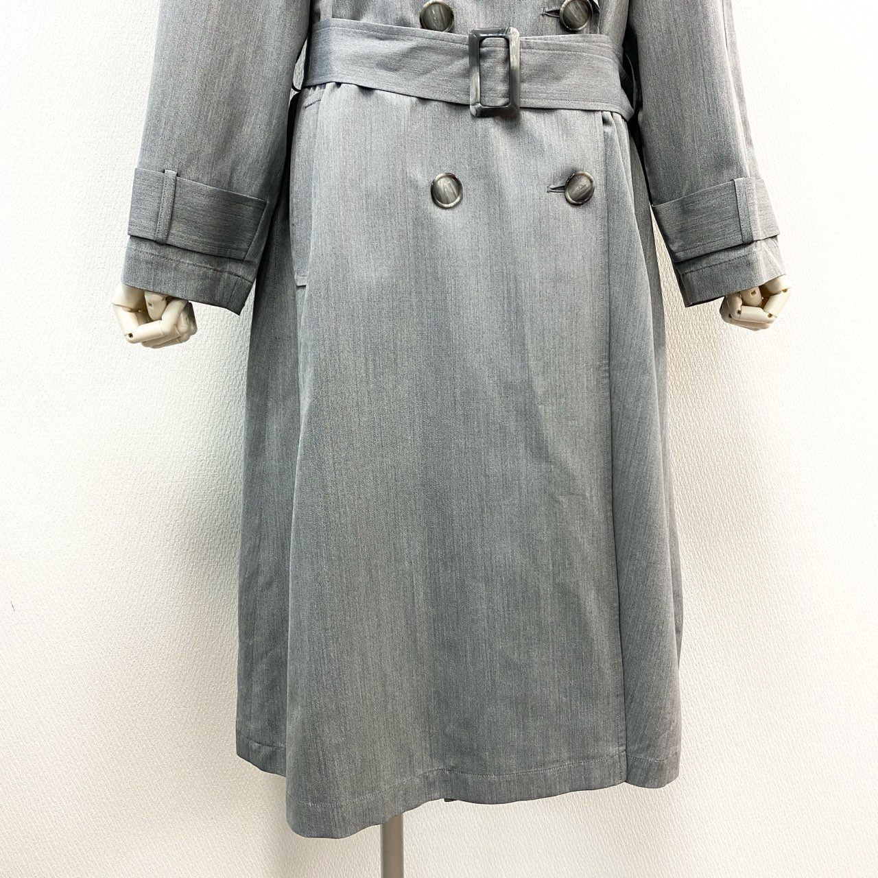 35j22 《美品》 Leilian レリアン ベルテッドコート 薄手スプリングコート 羽織り アウター サイズ9 グレー シルク レディースu02t