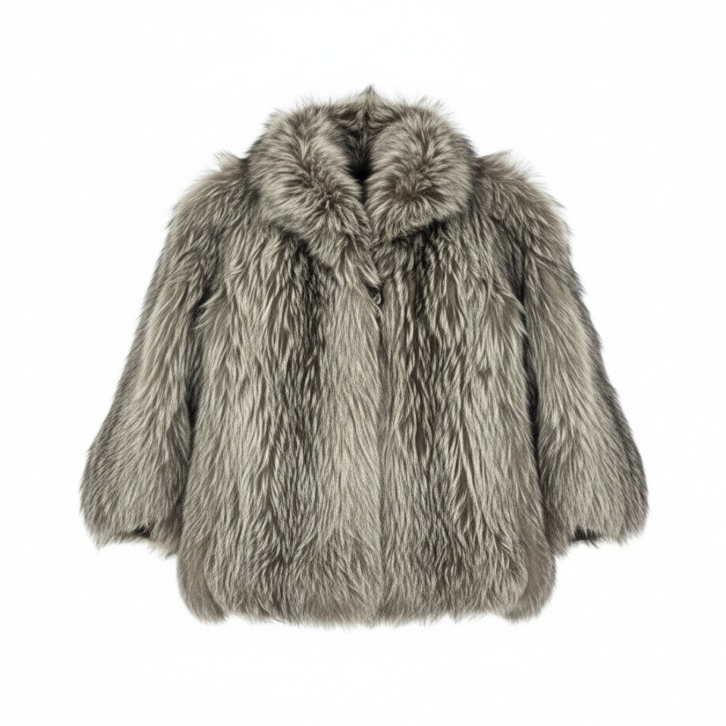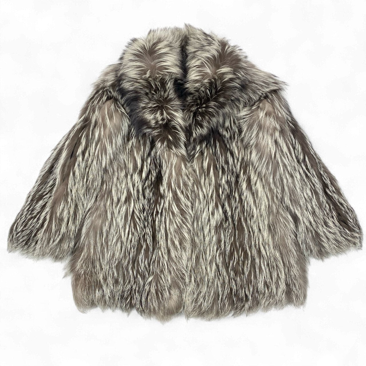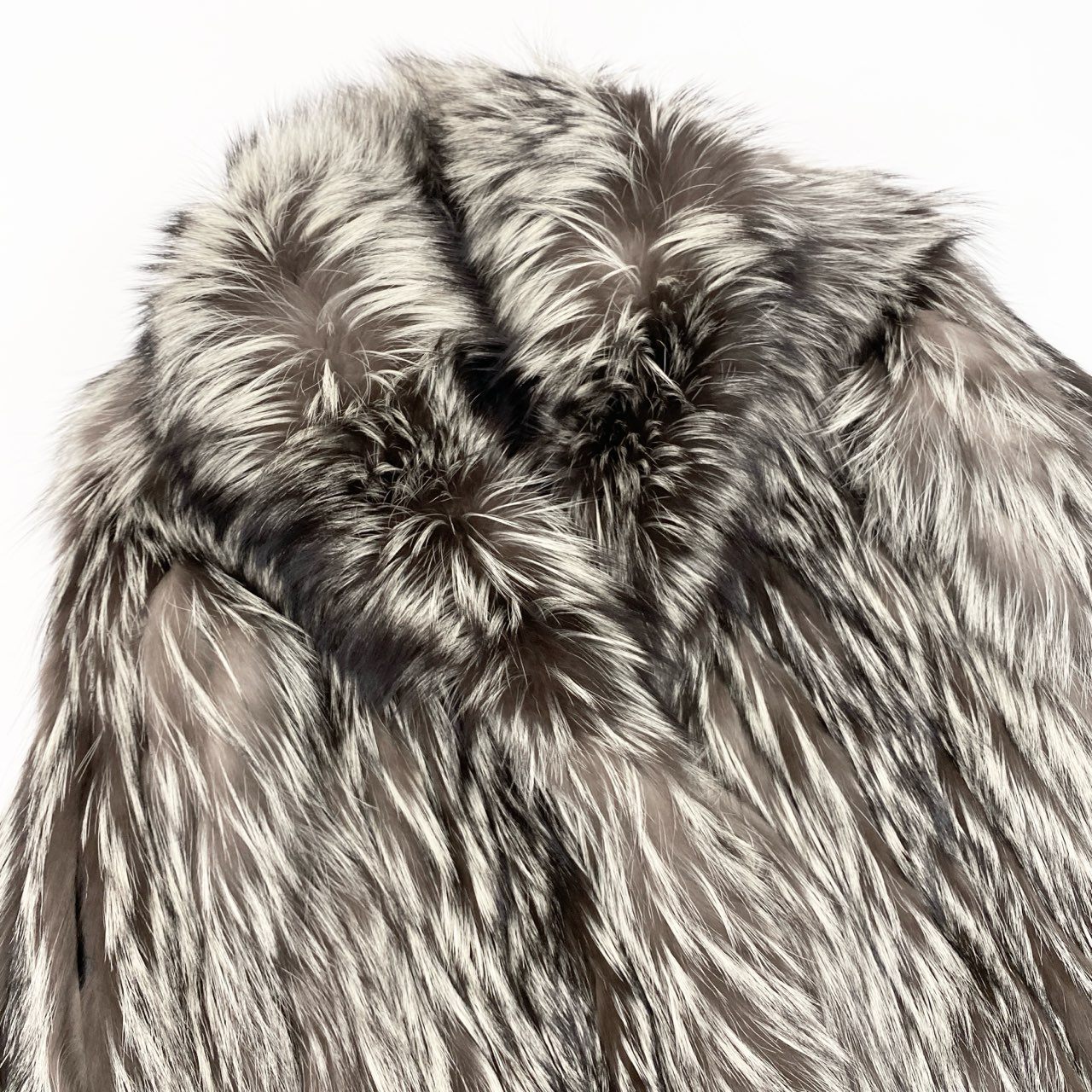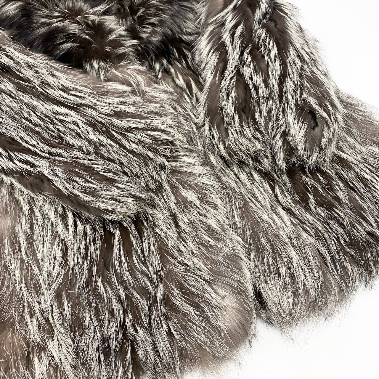 上質なシルバーフォックスの毛並みが美しい、サガフォックス(Gold SAGA)毛皮コートです。カラーは自然な濃淡が映えるシルバーグレーブラウン系で、毛足が長く非常にリッチな存在感があります。裏地にはエレガントな刺繍入りで、細部まで高級感のある仕立て。防寒性に優れ、普段使いから特別なお出かけ、ドレスアップシーンまで幅広く活躍します。1点で華やかさを演出できる、ワードローブの主役級アイテムです。
