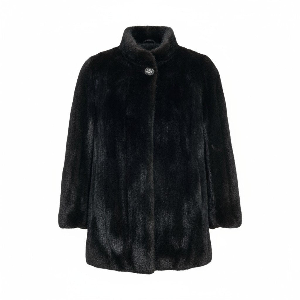深みのあるダークミンクが豊かな艶を放つ、ラグジュアリーなセミロングのミンクファーコートです。落ち着いたブラック系カラーで、光の角度によって美しい濃淡が浮かび上がる上質な毛並みが魅力。身幅にゆとりがあり、厚手ニットの上からも無理なく羽織れる実用的なシルエットです。シンプルな一つボタン仕様で、フォーマルにもデイリーにも合わせやすい万能デザイン。長く愛用できる高品質なミンクコートをお探しの方におすすめの一着です。