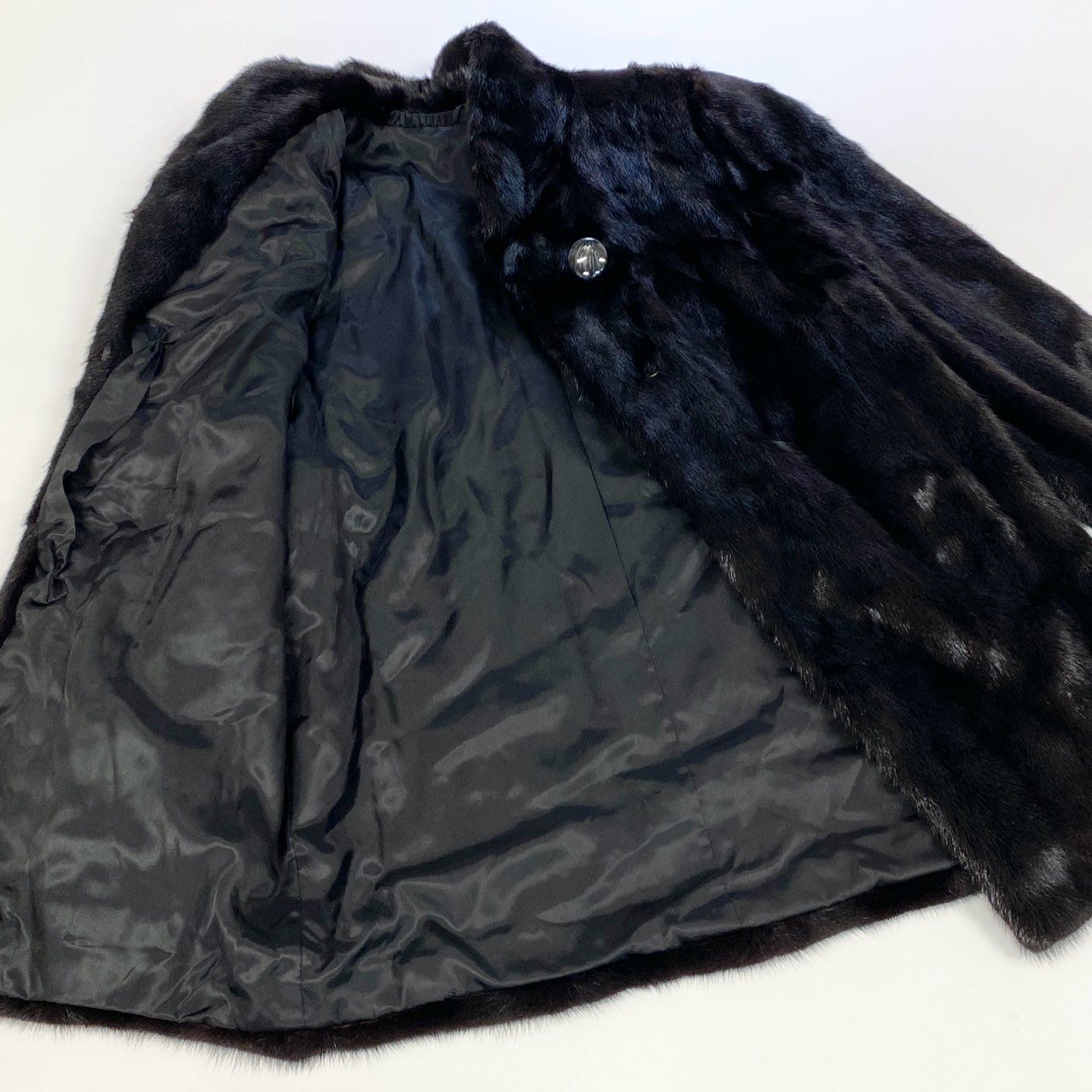 42k14 【美品】 THE INTERNATIONAL COLLECTION インターナショナルコレクション ファーコート 毛皮コート ミンクファー セミロングコート ダークミンク Fサイズ ブラック レディースu02t