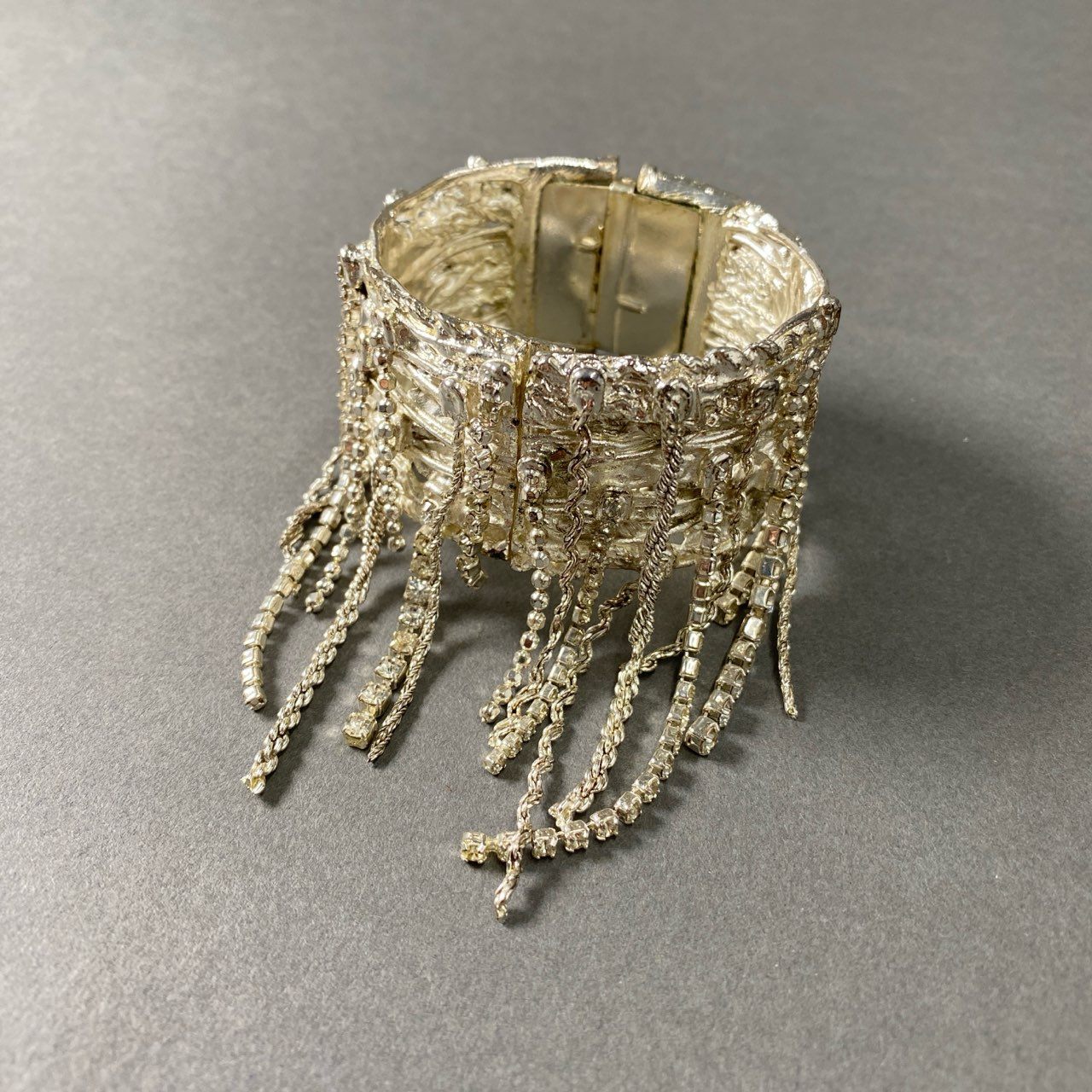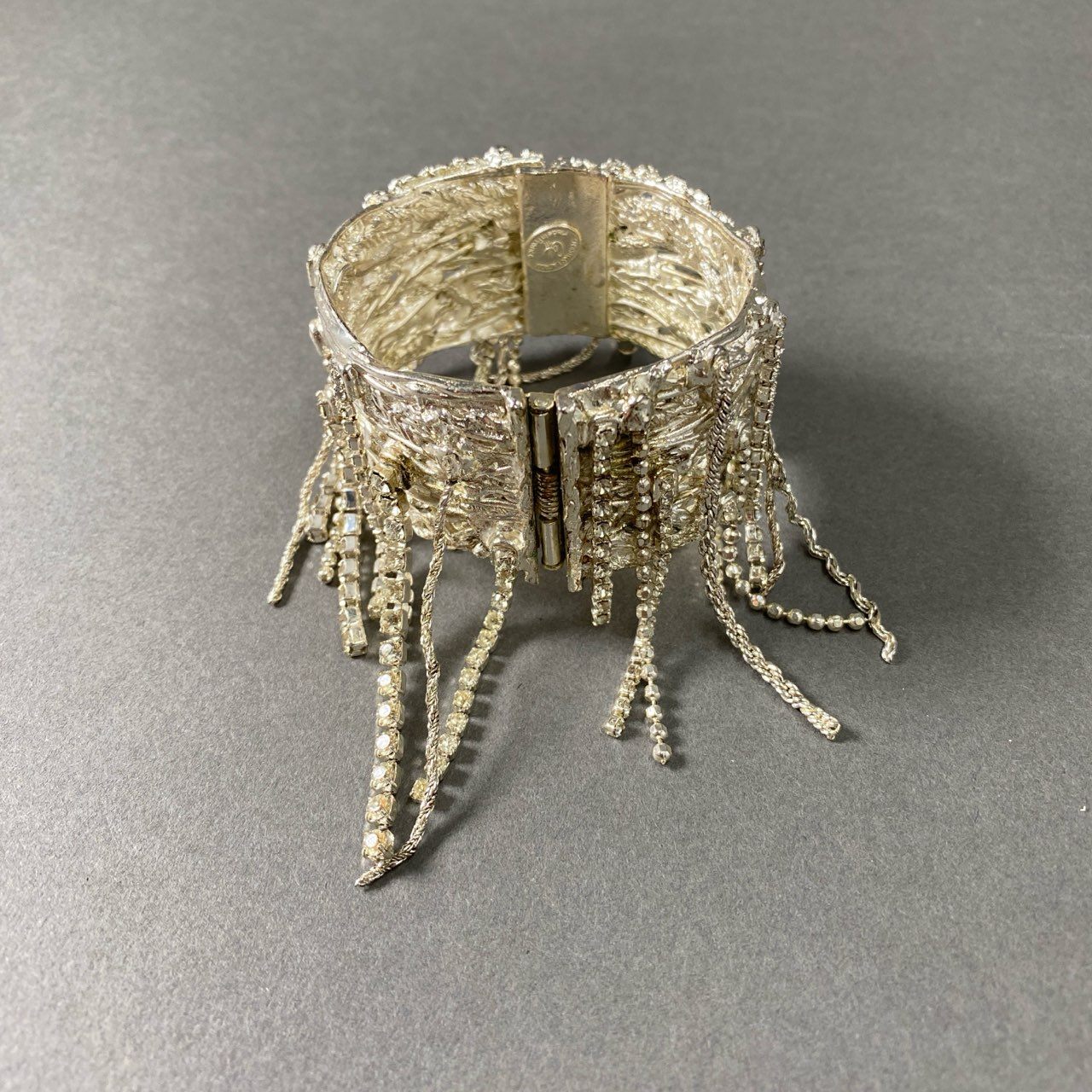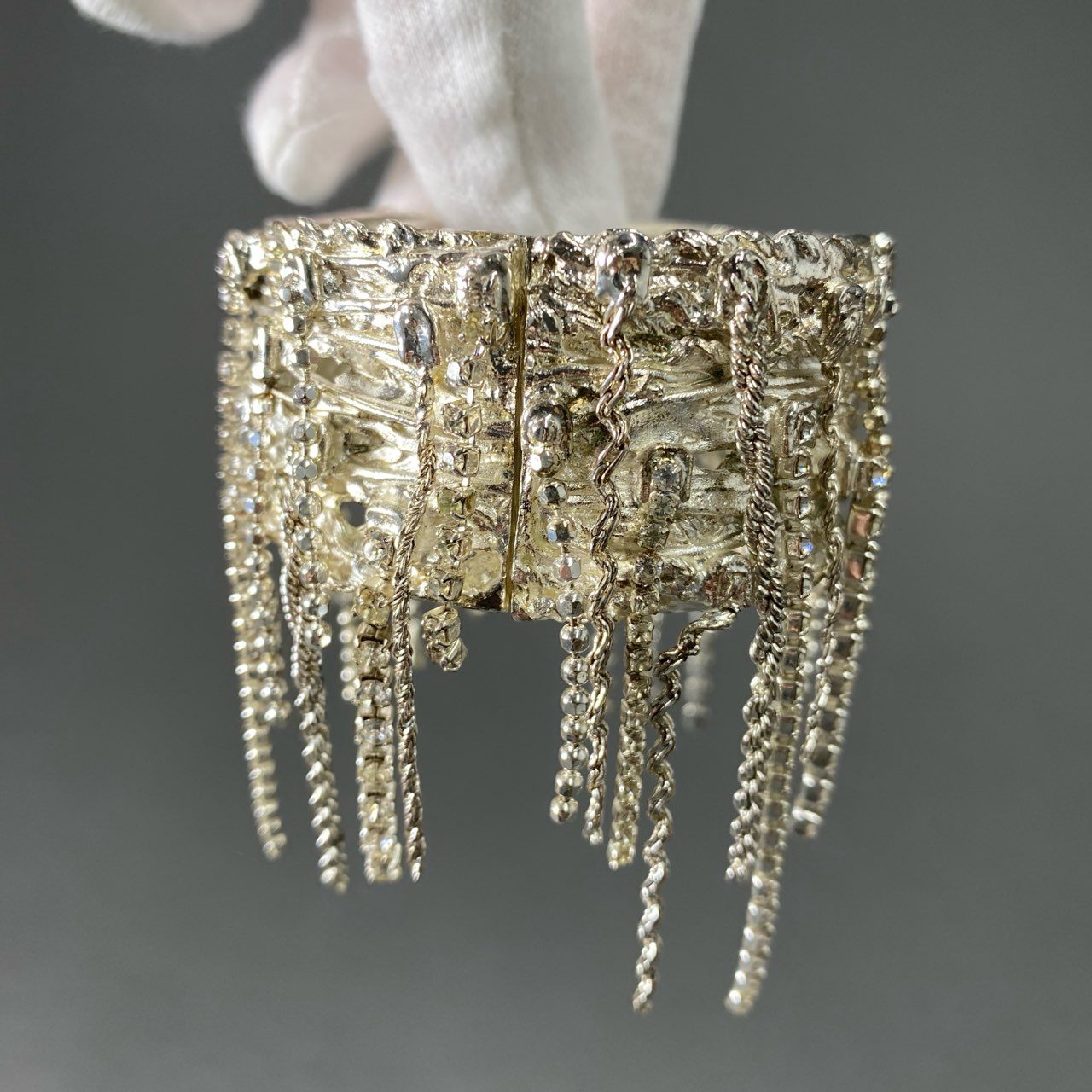 Pf16 《希少》 Christian Lacroix クリスチャン ラクロワ ヴィンテージ フリンジ シルバーバングル ブレスレット フランス製 アンティーク ラインストーン チェーン アクセサリー