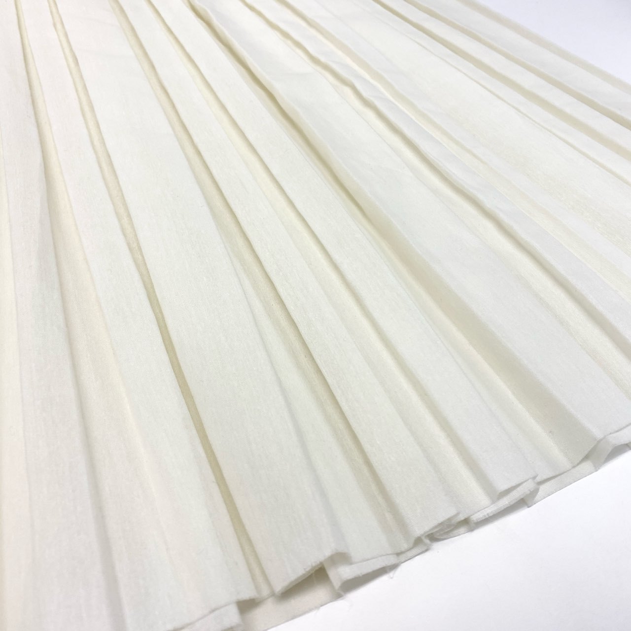 アイボリーの無地プリーツは縦ラインが強調され、細見え効果が期待できます。