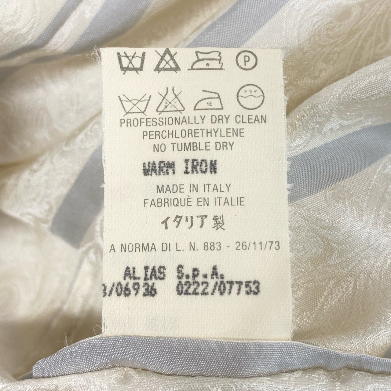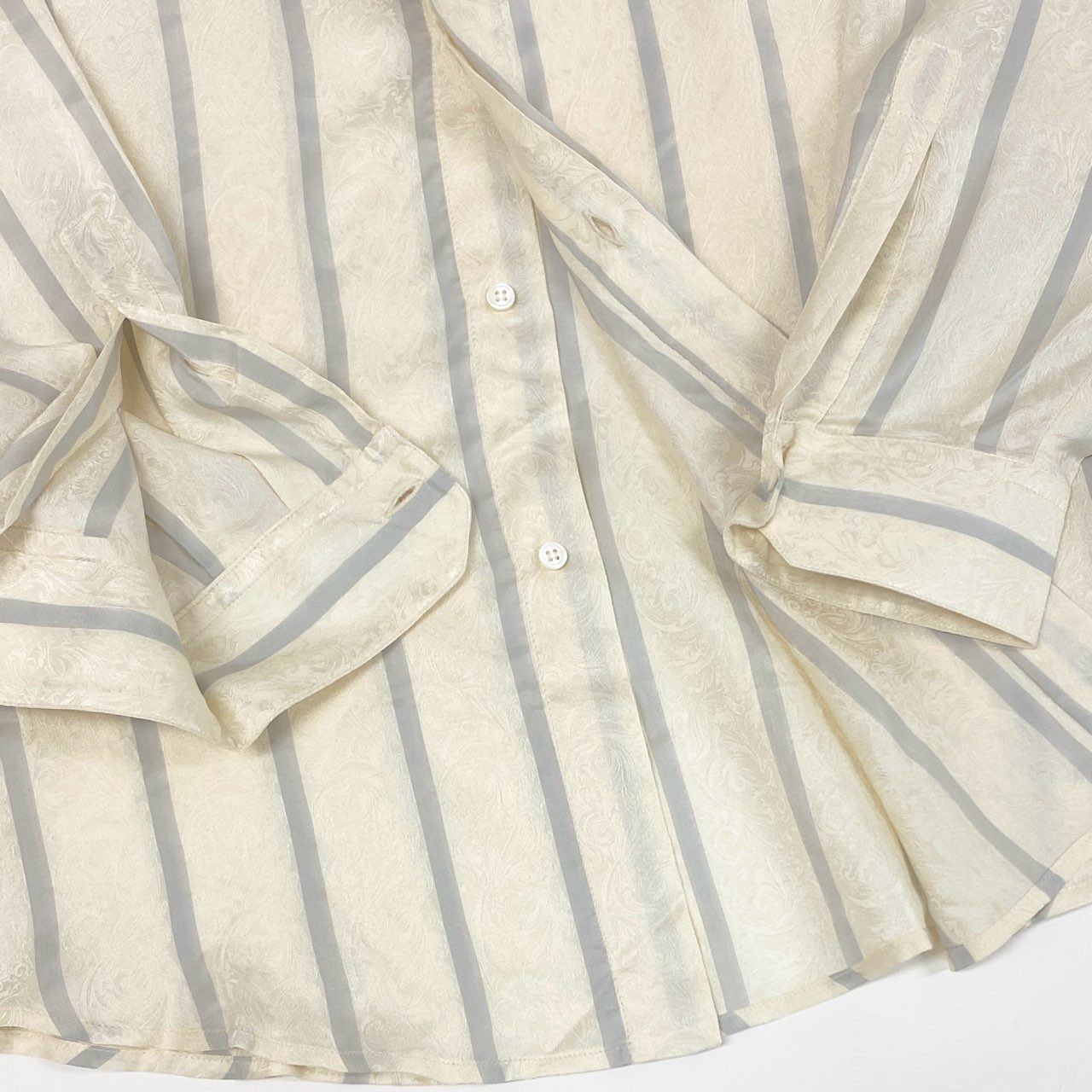7f11 《極美品》 Gianni Versace ジャンニヴェルサーチ 総シルク 長袖シャツ とろみシャツ ストライプ バロック柄 透かし模様 イタリア製 50 アイボリー シルク100%