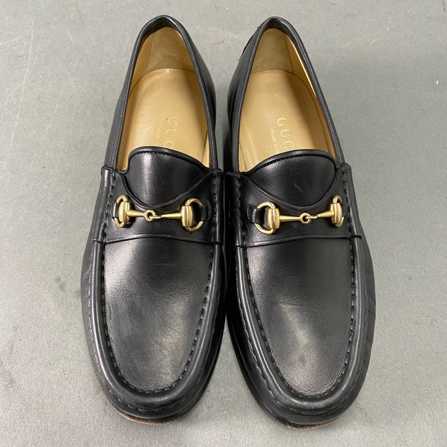 1L5《伊製》GUCCI グッチ 34 1/2(22.5cm相当) ホースビットローファー レザーシューズ レディース 革靴