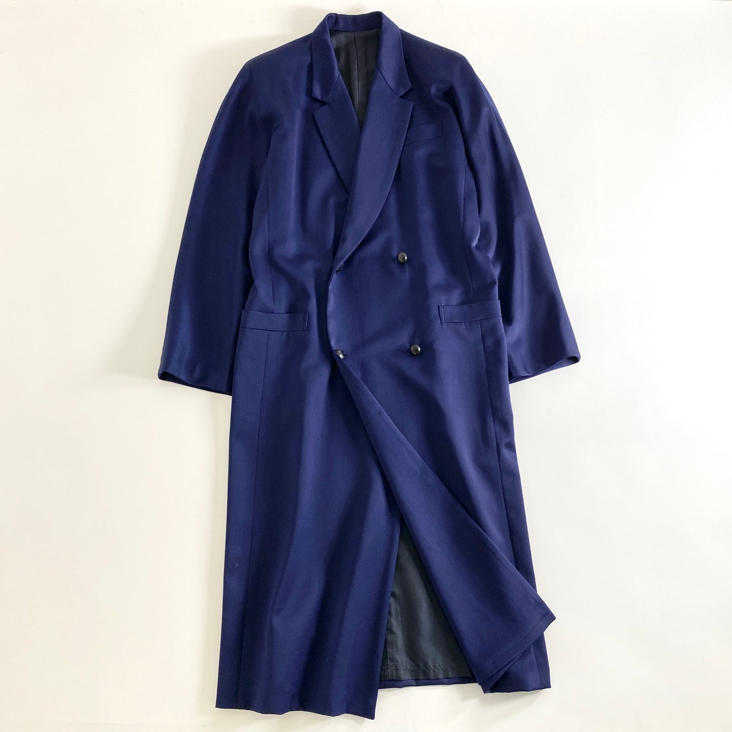 30a20 日本製 Y's ワイズ チェスターコート ロングコート ネイビー ウールコート ダブル 無地