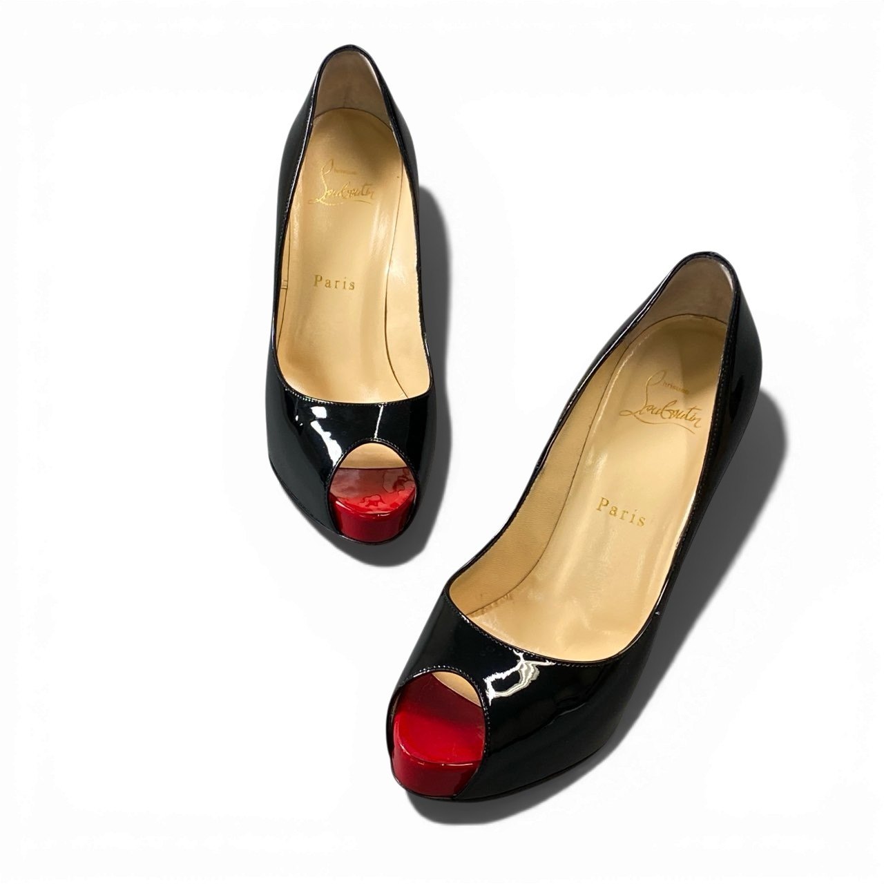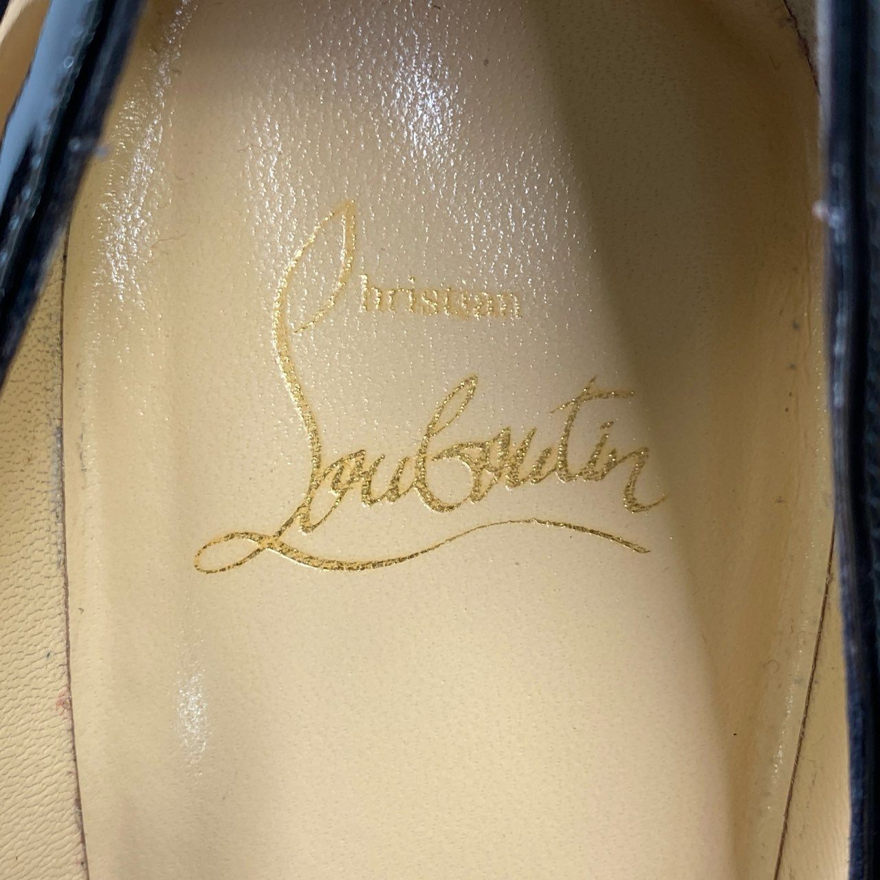 3a5 christianlouboutin クリスチャンルブタン オープントゥ パンプス サンダル エナメル シューズ 37サイズ ブラック レディースk02i