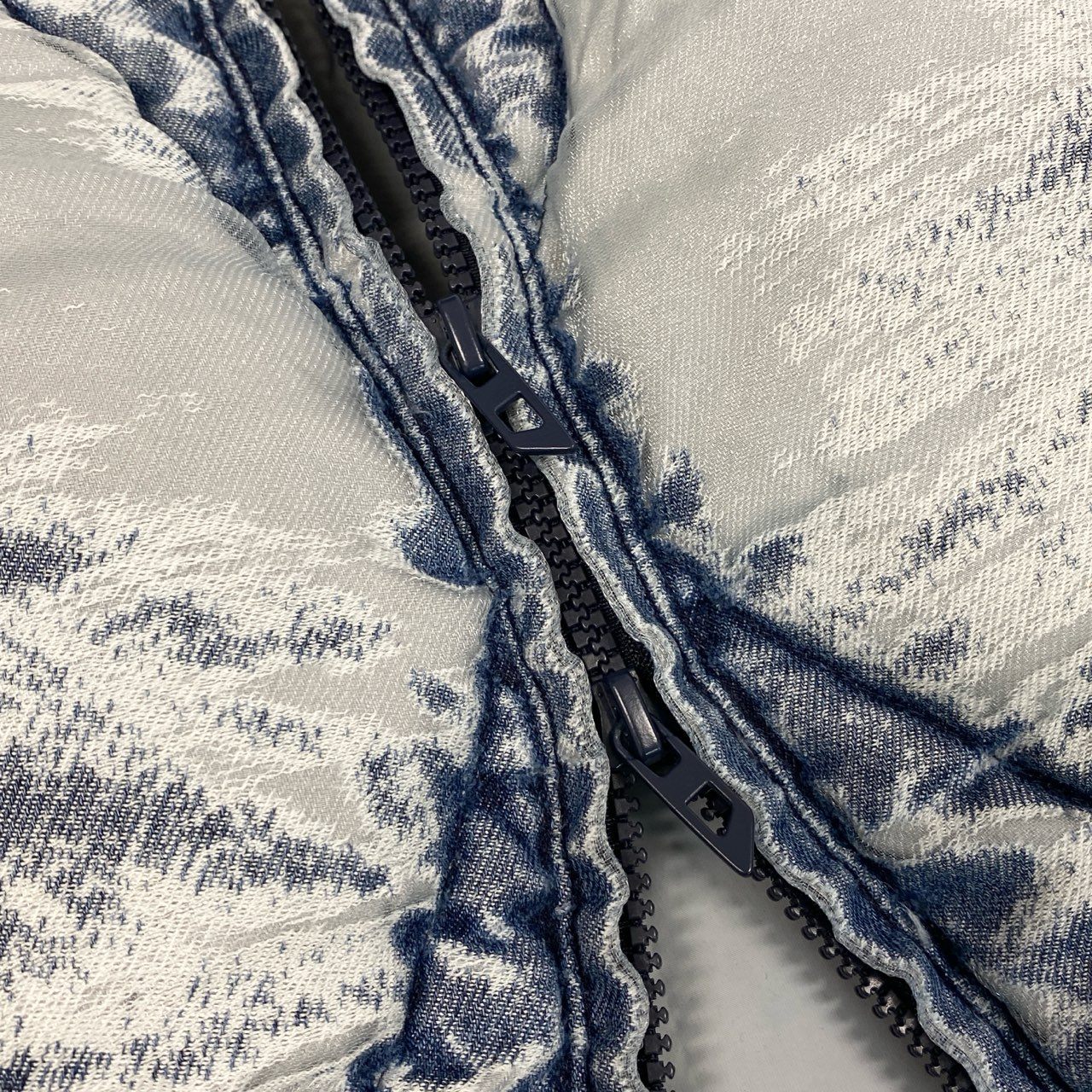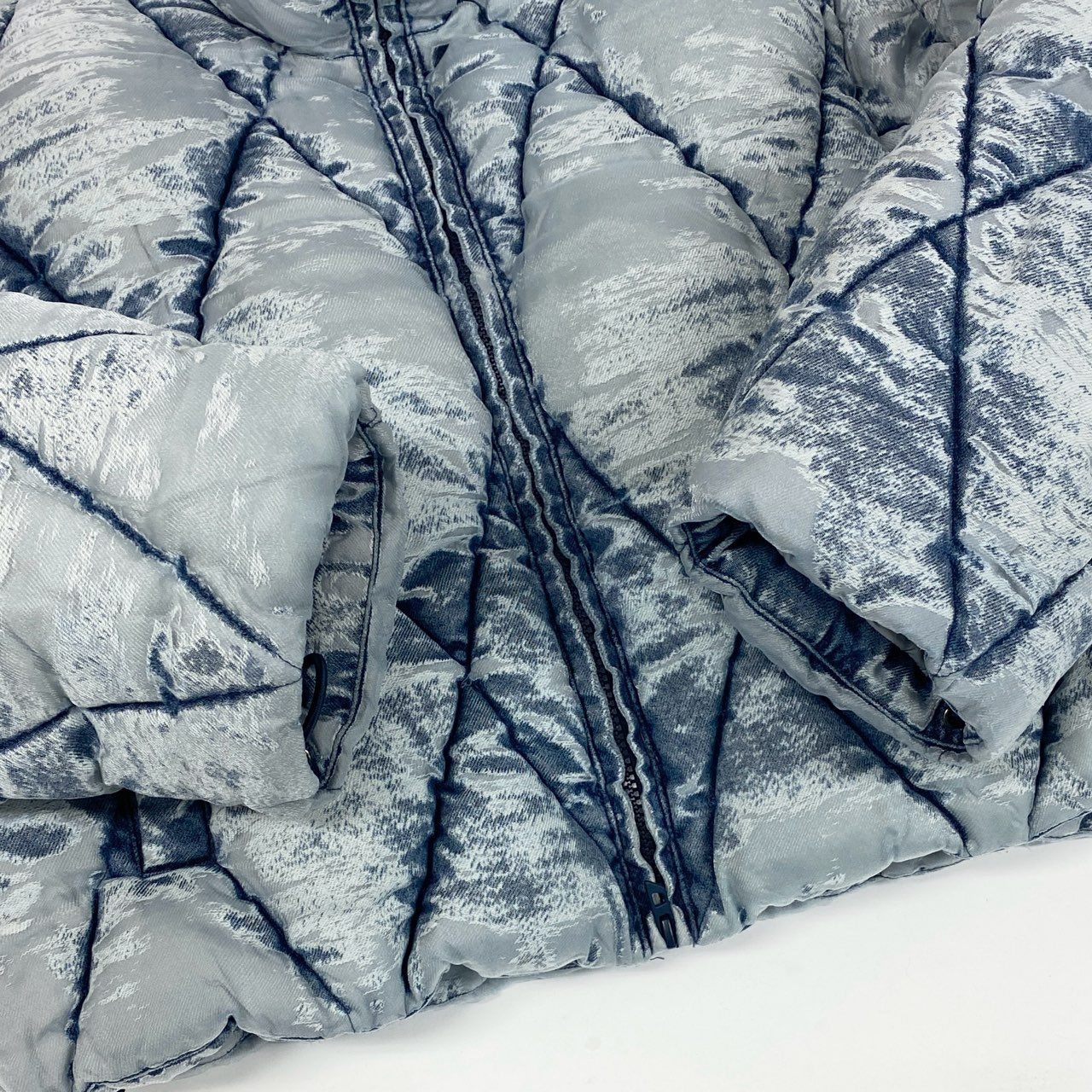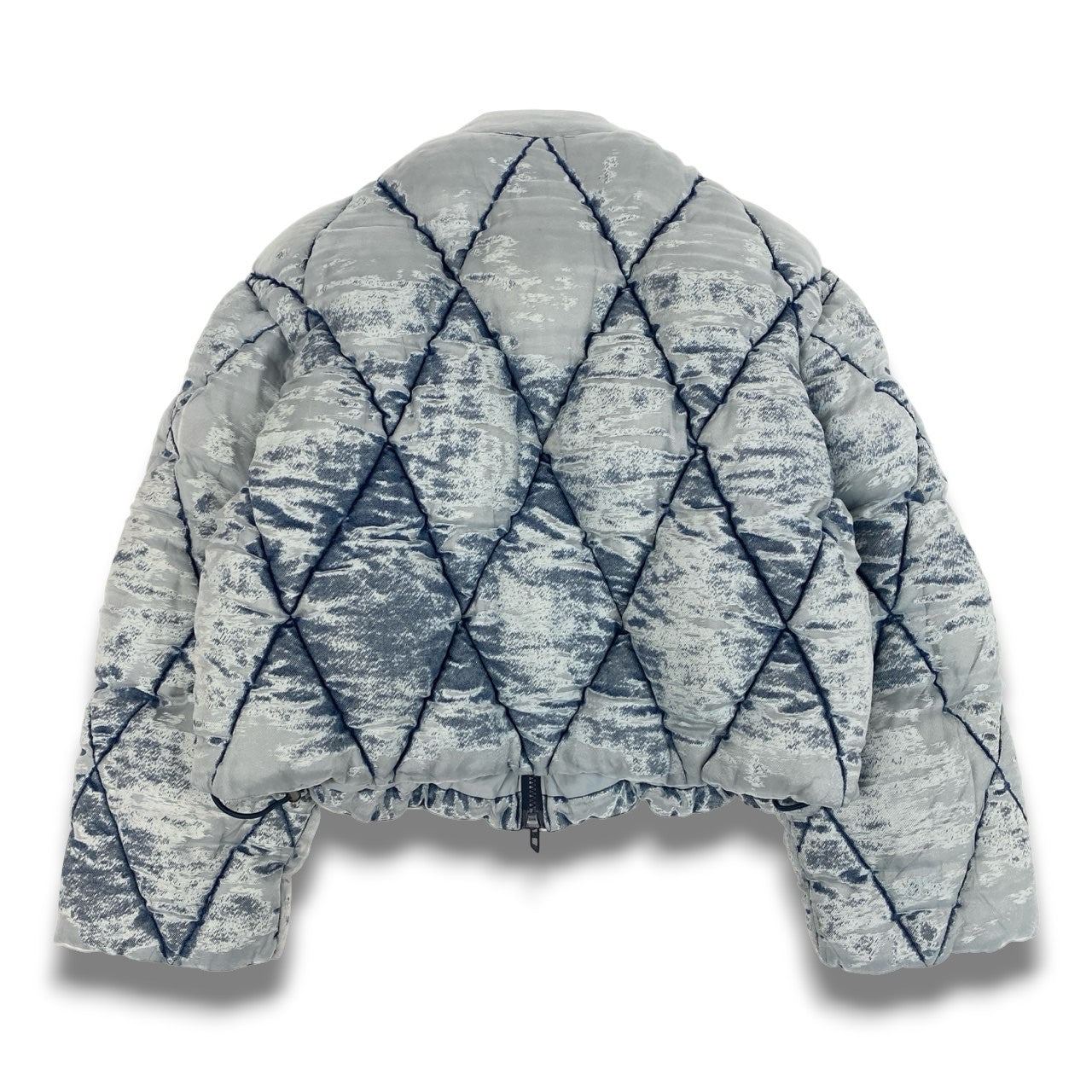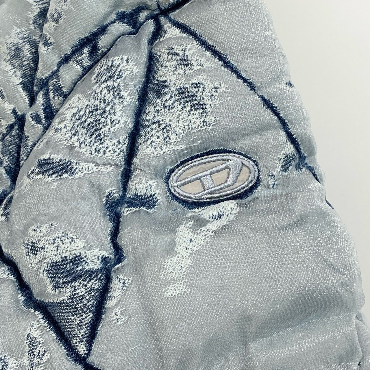 インディゴブルーをベースにしたバーンアウトウォッシュ加工が印象的なDIESELのパファージャケット「W-HISTEL」です。ヴィンテージデニムのような表情のカモフラージュ調ウォッシュ柄と、ダイヤ型キルティングデザインが特徴。中綿入りで保温性がありながら、ショート丈シルエットでトレンド感のあるスタイリングを演出します。マットなナイロン系素材と立体的なボリューム感が魅力で、デニムやカーゴパンツと合わせたストリートカジュアルにもおすすめの一着です。