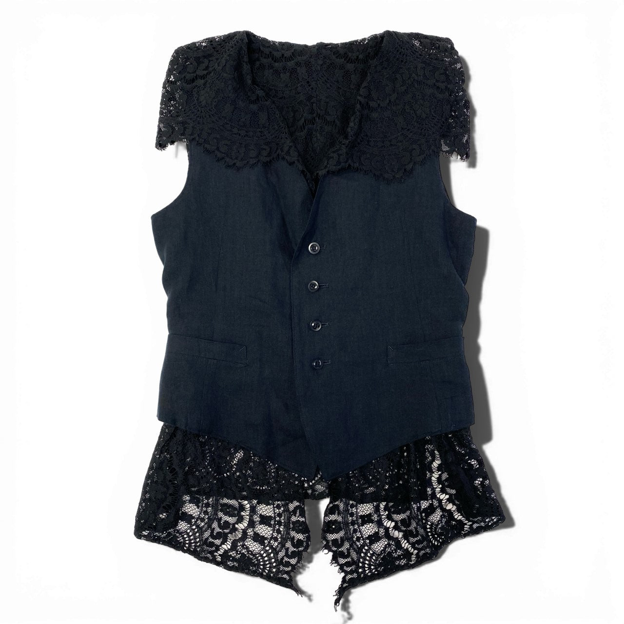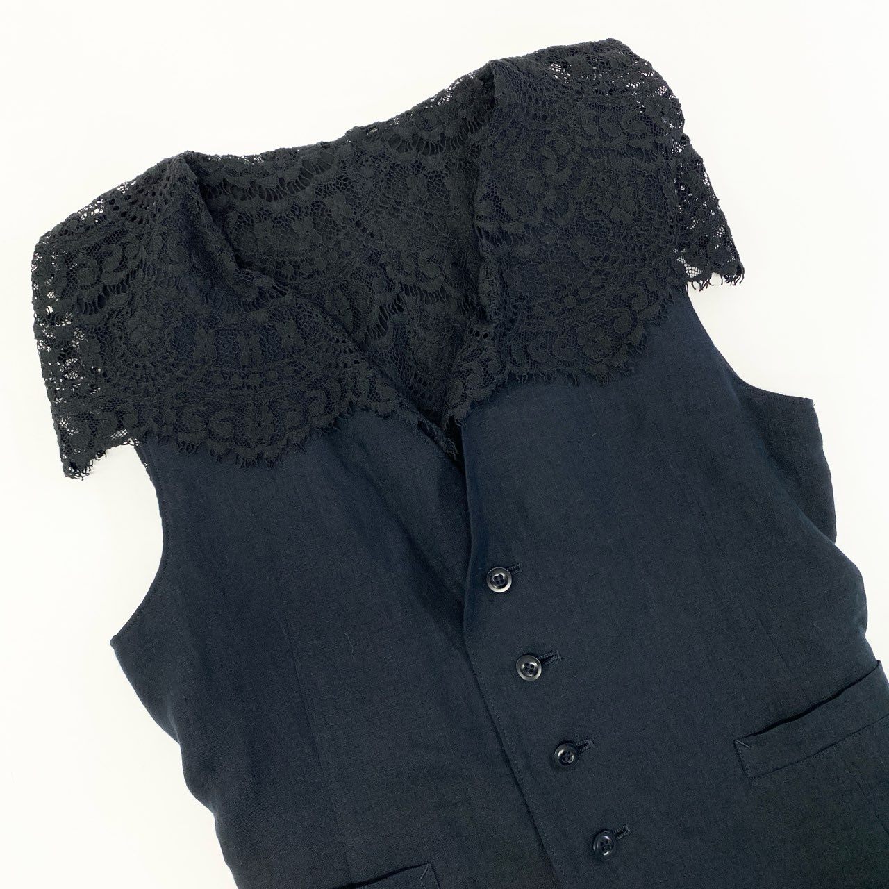 Aa21 Y's ワイズ ヨウジヤマモト レースレイヤードデザイン リネンジレ ベスト サイズ2 ブラック レディース デザイナーズk02i