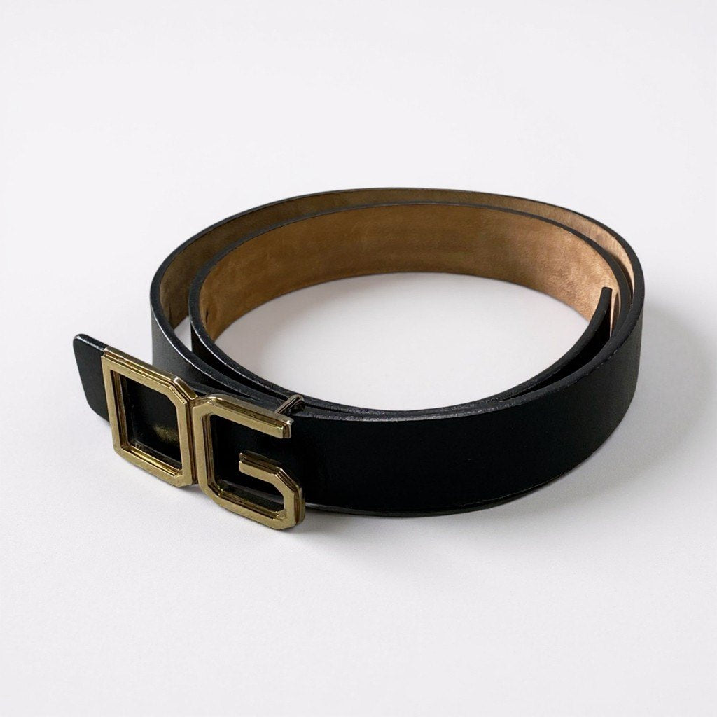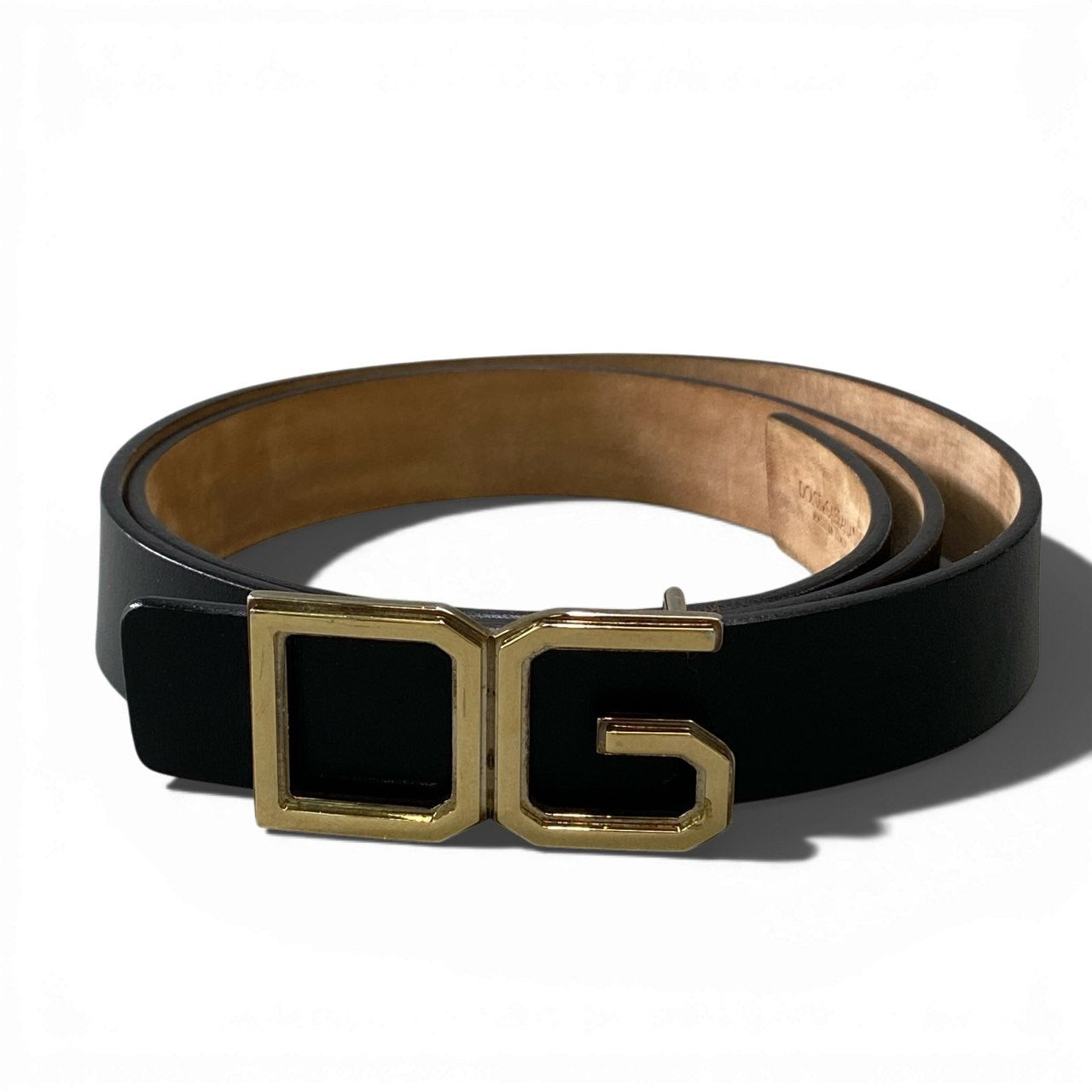 a6 DOLCE&GABBANA ドルチェアンドガッパーナ レザーベルト DGロゴ バックル イタリア製 85CM 34INCH ブラック レザー レディースk02i