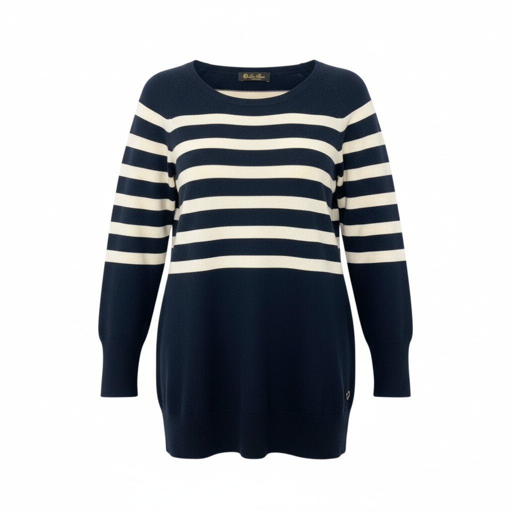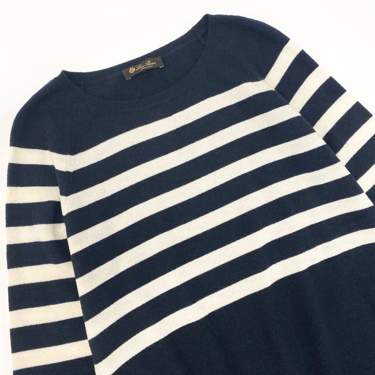 52k23 Lolo Piana ロロピアーナ ニットセーター クルーネック ロングスリーブ ボーダー イタリア製 レディース 42 ネイビー ホワイトu02t