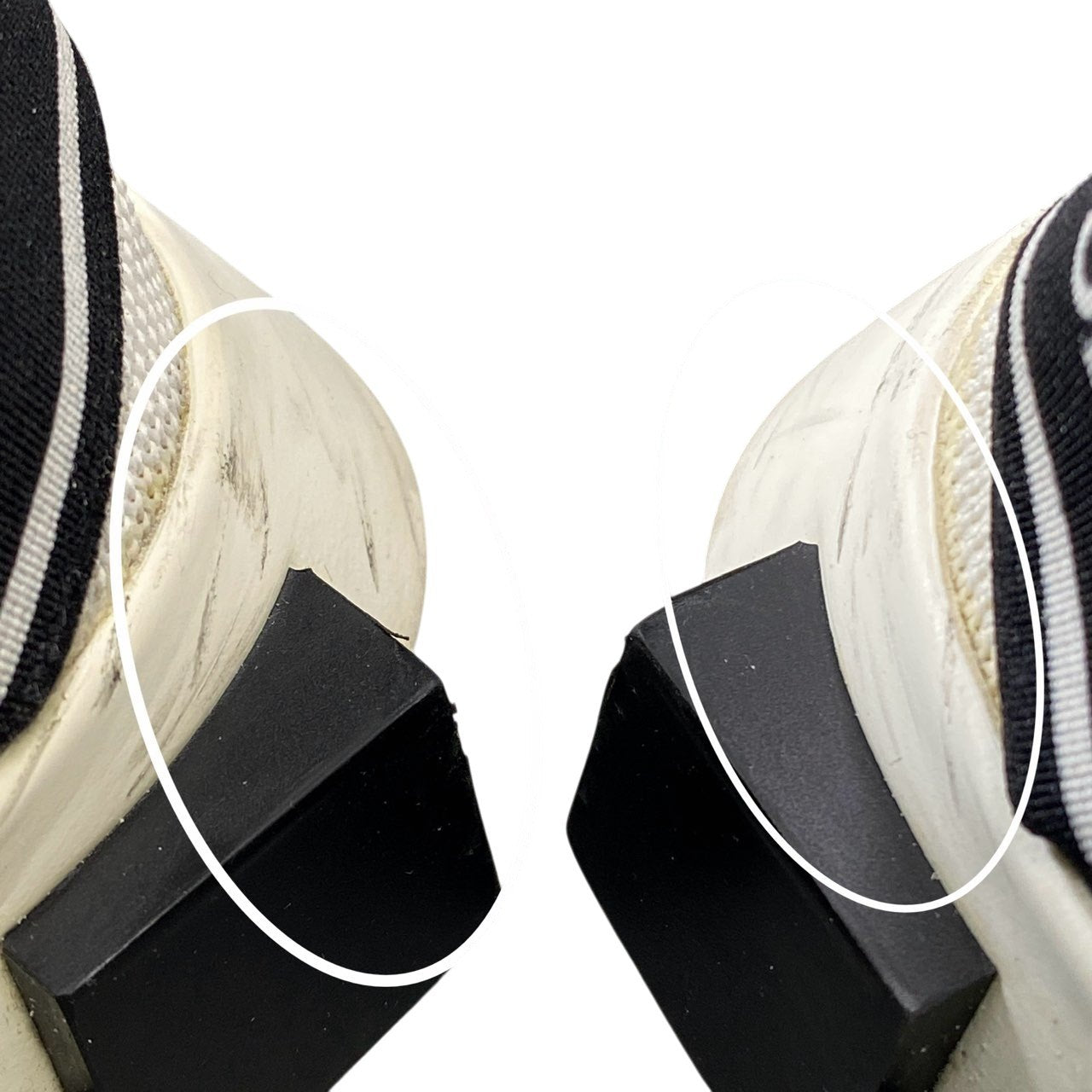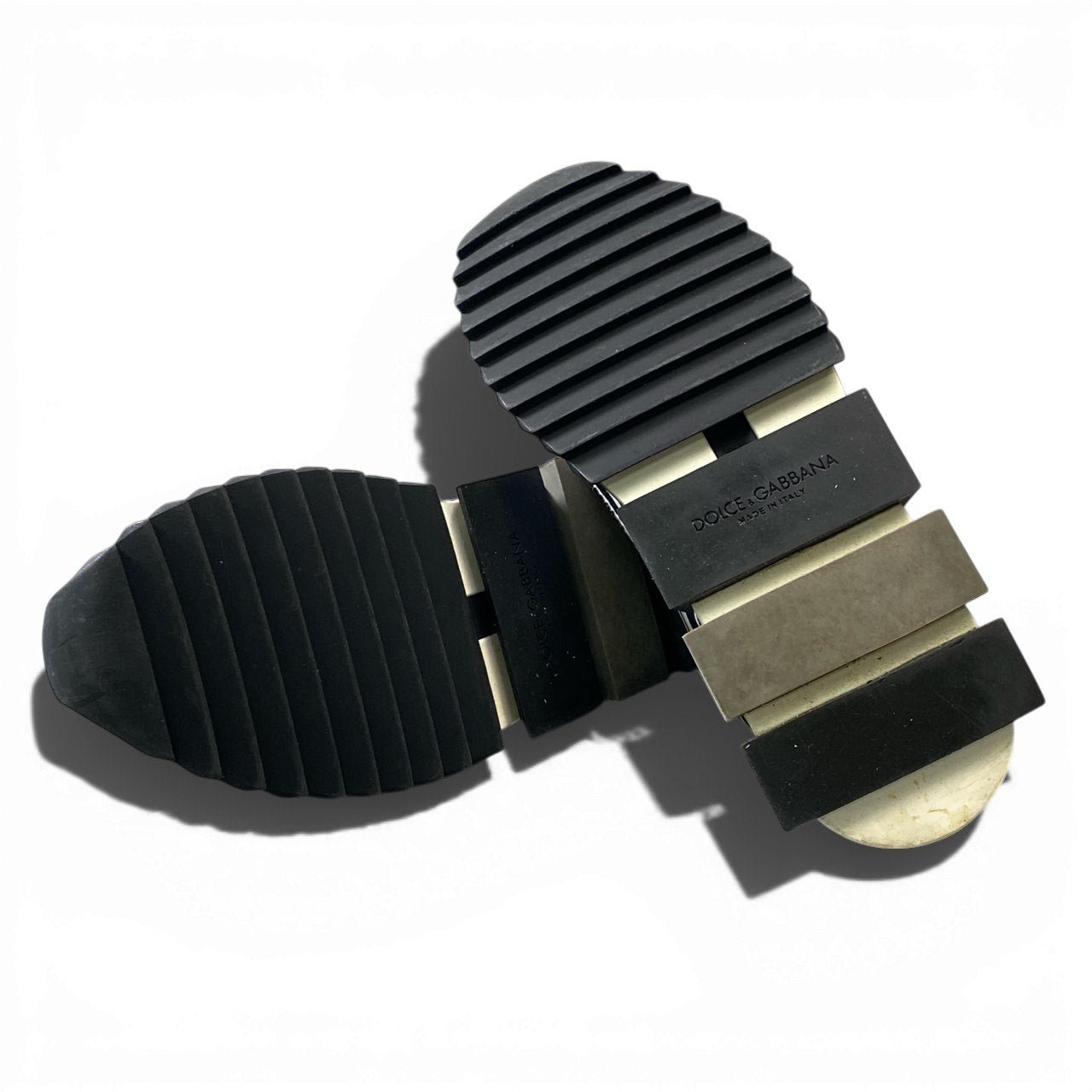 アイボリー×ブラックの配色に大胆なロゴプリントが映える、Dolce & Gabbanaのロートップスニーカーです。 通気性のあるニット素材をベースに、マットな質感が軽やかな履き心地を演出します。 厚みのある立体的なソールデザインが特徴で、安定感と存在感を両立。 カジュアルスタイルやモードなコーディネートのアクセントとして、デイリーから旅行まで幅広く活躍する一足です。
