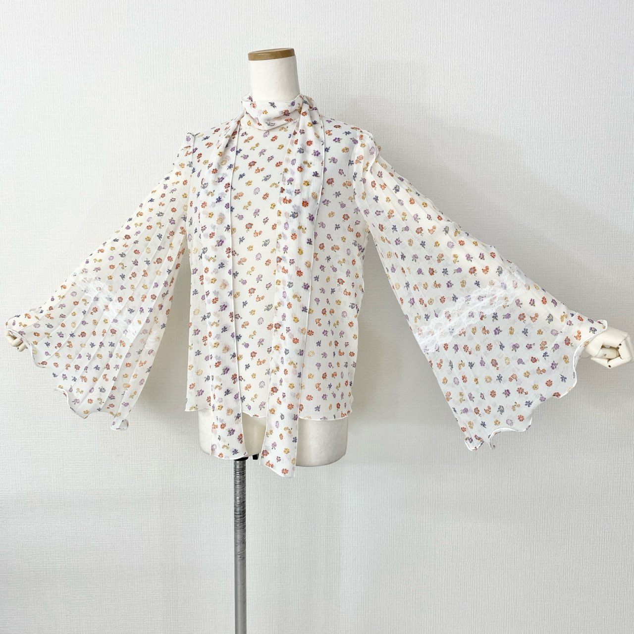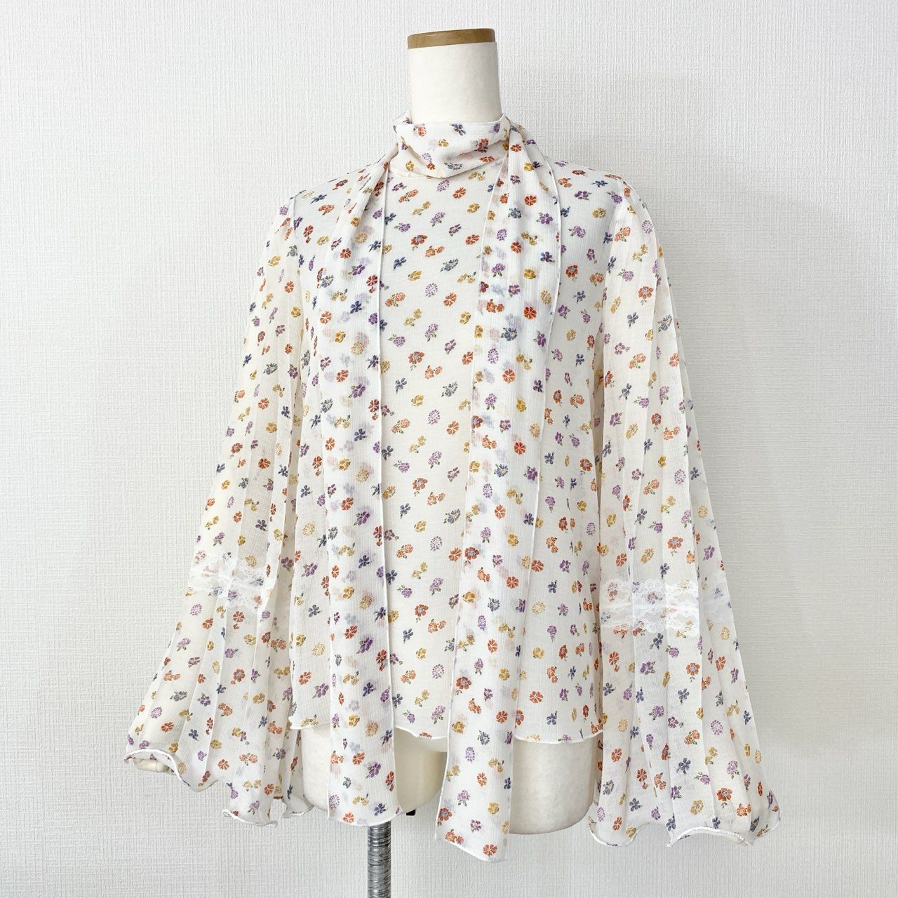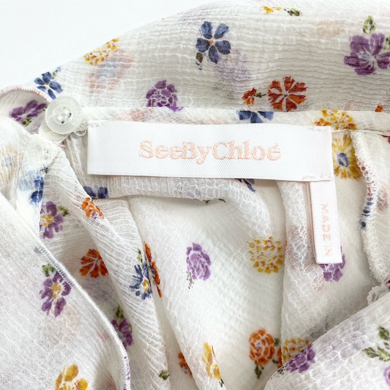 01f16 See by Chloe シーバイクロエ シアー素材 花柄 ボウタイブラウス 長袖ブラウス フラワー サイズ36 ホワイト レディース