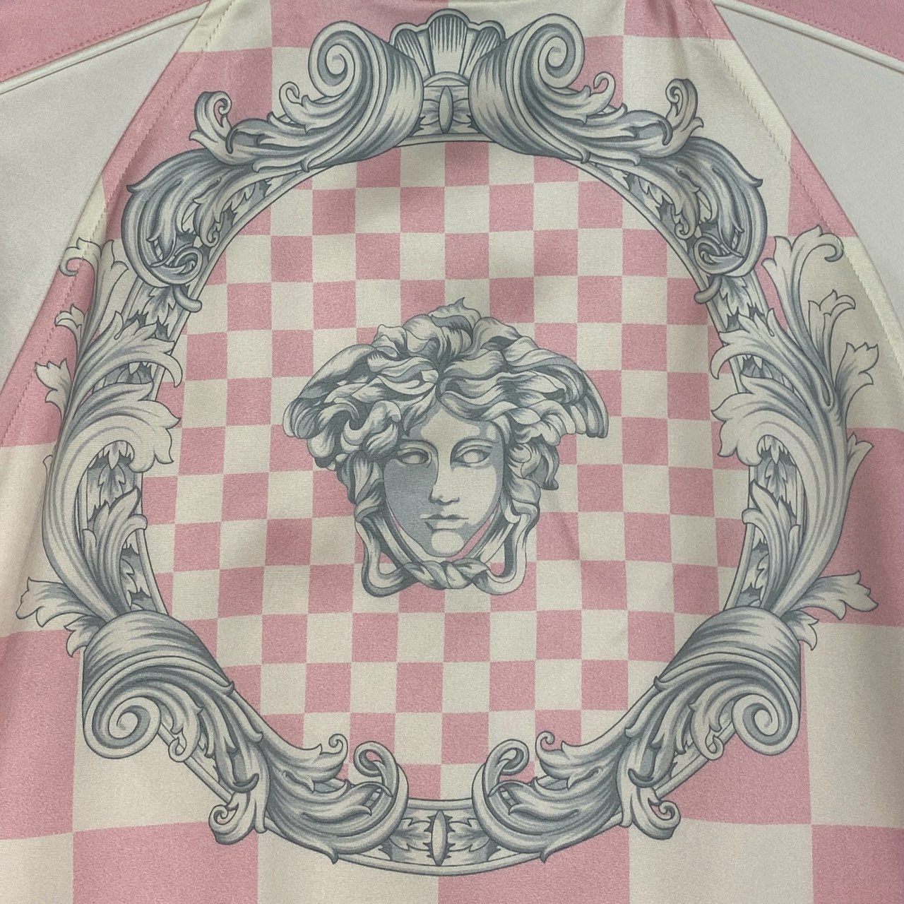 65b10【新品保管品】VERSACE ヴェルサーチ ボンバージャケット バロッコプリント ブルゾン イタリア製 38サイズ ピンク ホワイト レーヨン100% レディース 女性用k02i