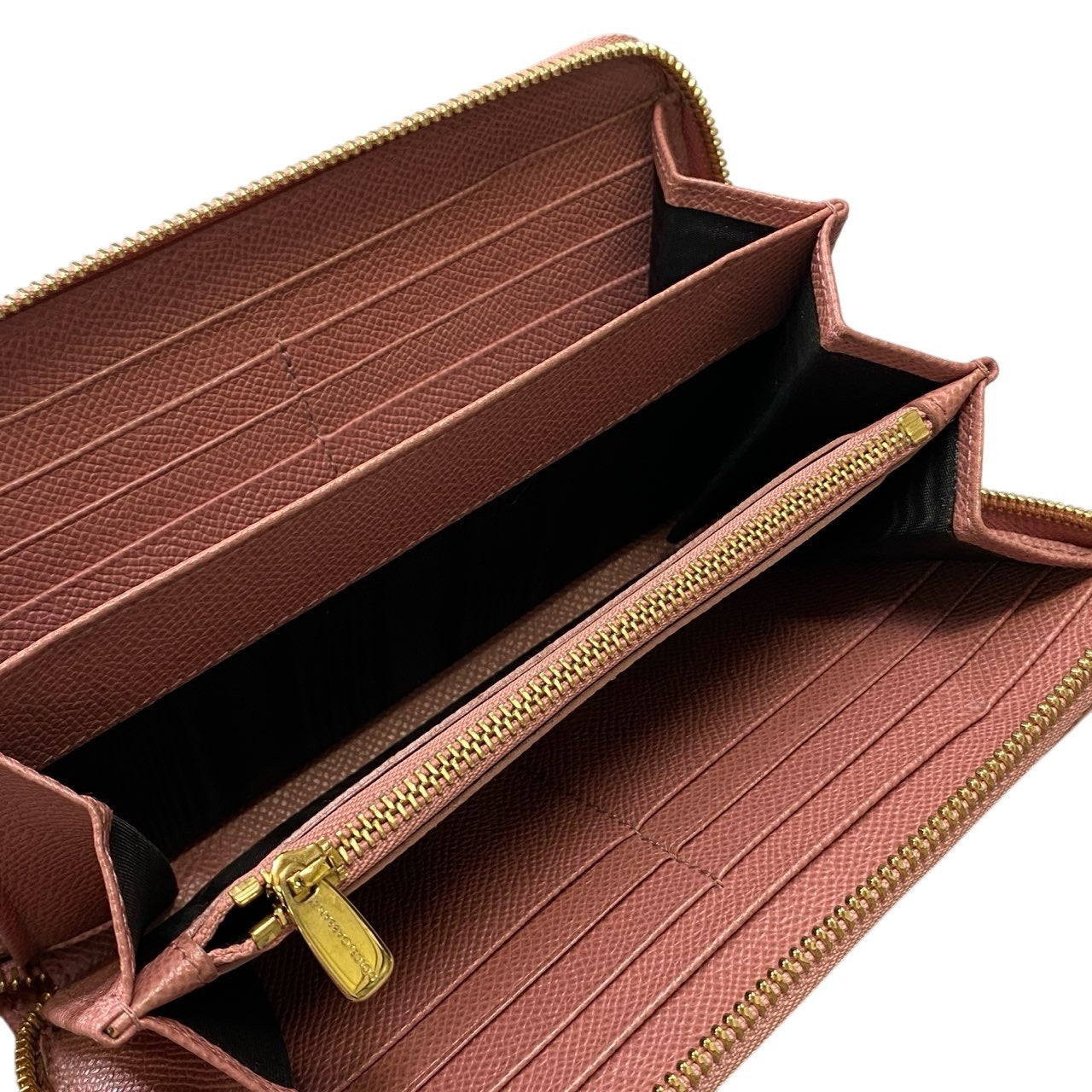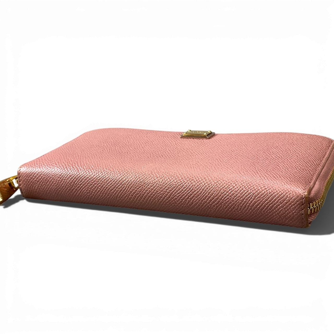 a5 DOLCE&GABBANA ドルチェアンドガッバーナ ラウンドファスナー 長財布 レザー ロゴプレート ピンク レディースk02i