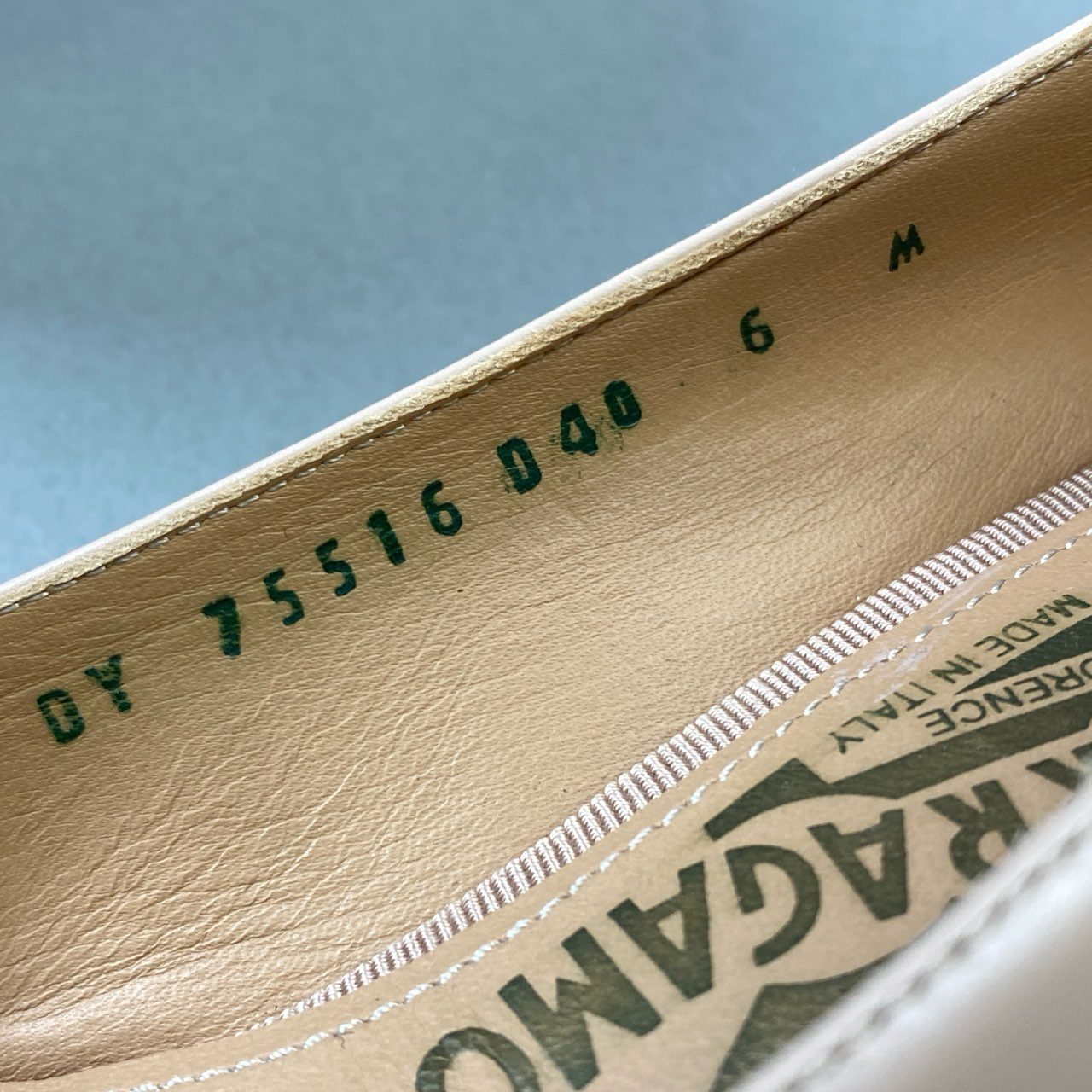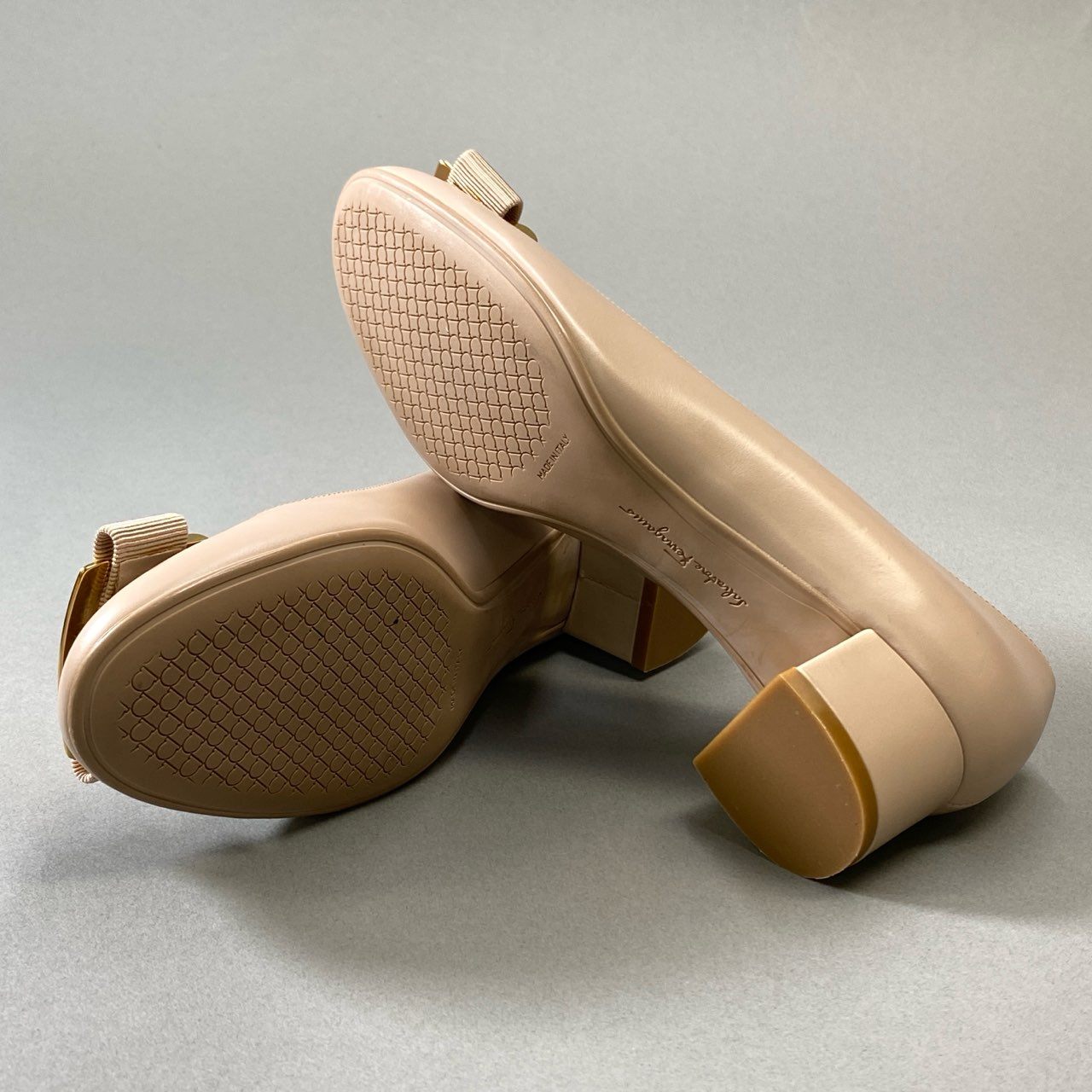 6j16 《美品》 SALVATORE FERRAGAMO サルヴァトーレフェラガモ NINNA ヒールパンプス イタリア製 ヴァラリボン シューズ 6 23cm相当 ピンクベージュ レザー レディースo07t