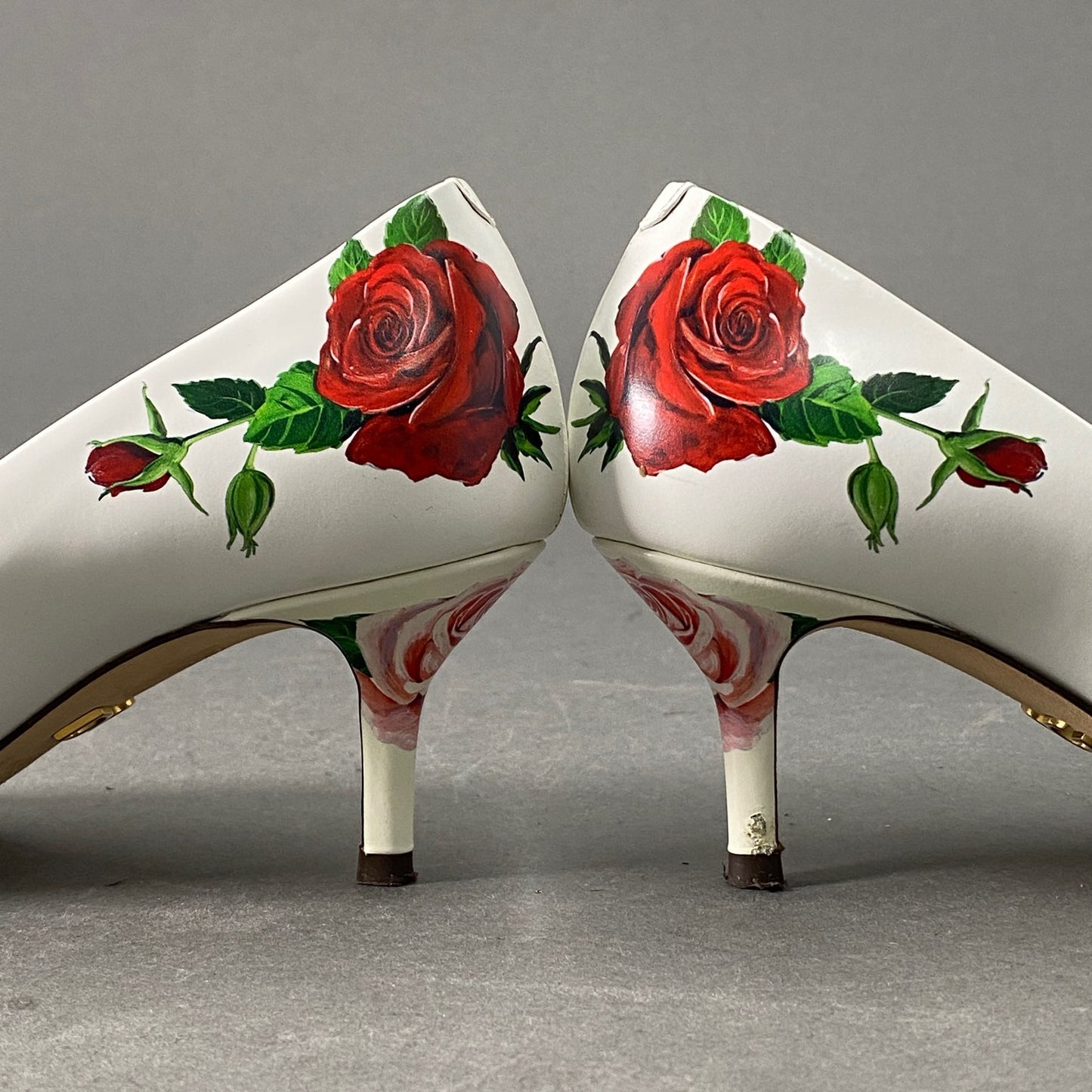 2L5《美品》Dolce&Gabbana ドルチェ&ガッバーナ 34 ホワイト ビジューフラワー パンプス 花柄 レディース レザーパンプス